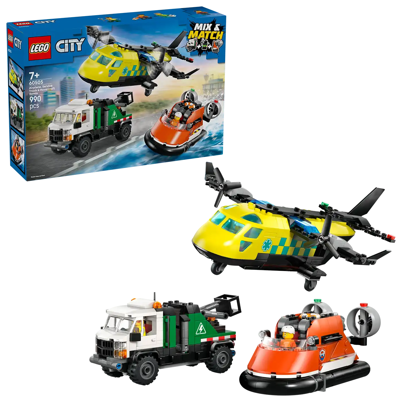 60505 - LEGO City - Repülőgép, emelőkosaras kocsi és légpárnás jármű remix