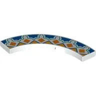 27507pb17c1 - LEGO fehér csempe 4 x 4 méretű, íves sarok (macaroni), kék, narancssárga csempe mintával