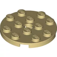 60474c2 - LEGO világos krémszínű (tan) lap 4 x 4 méretű, kerek lyukkal a közepén