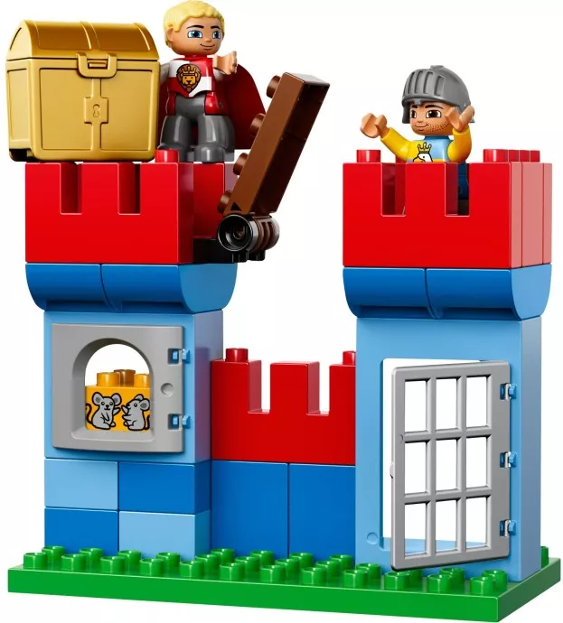 LEGO® DUPLO 10577 - LEGO® DUPLO Királyi kastély. Támadd meg a nagy királyi kastélyt, és kezdődjék a játék! Ugorj a felvonóhídra és harcolj a királyhoz hű lovagok ellen, majd keresd meg a királyt és a kincseit. Ebben a készletben mindent megtalálsz, amire gyermekednek szüksége van, hogy egymás utáni kalandok sorát találja ki. Segíts a gyerekeknek növekedni és tanulni miközben számos változatban építik meg a kastélyt az összes extra építőelem és kiegészítő felhasználásával , hogy saját történeteikbe is belekezdjenek. Taníts őket történelemre, miközben élvezik a királyhoz és a lovagokhoz kötődő szerepjátékot. Az élvezet és a kalandok sosem érnek véget! 4 LEGO® DUPLO® figurát tartalmaz: egy királyt és 3 lovagot.