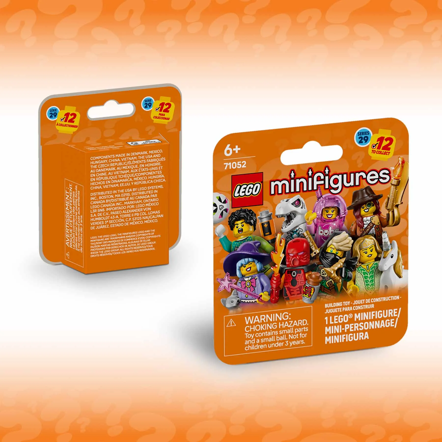 Örvendeztesd meg a fiatal építőket a 12 gyűjthető minifigura valamelyikével a LEGO® Minifigurák, 29. sorozat (71052) meglepetéscsomagból, amely 6 évnél idősebb lányok és fiúk számára készült. Minden dobozban 1 meglepetés LEGO minifigura található, köztük egy focikapus, tengerbiológus, tubaművész, tünde és egyszarvú, szörnyvadász, robot T-Rex, csokoládékészítő, bobatea-rajongó, BIONICLE® jelmezes emberke, titokzatos rónin, aranyos boszorkány és szemétszörny.