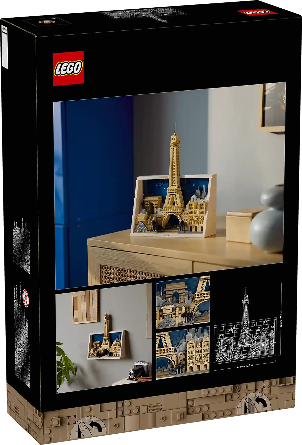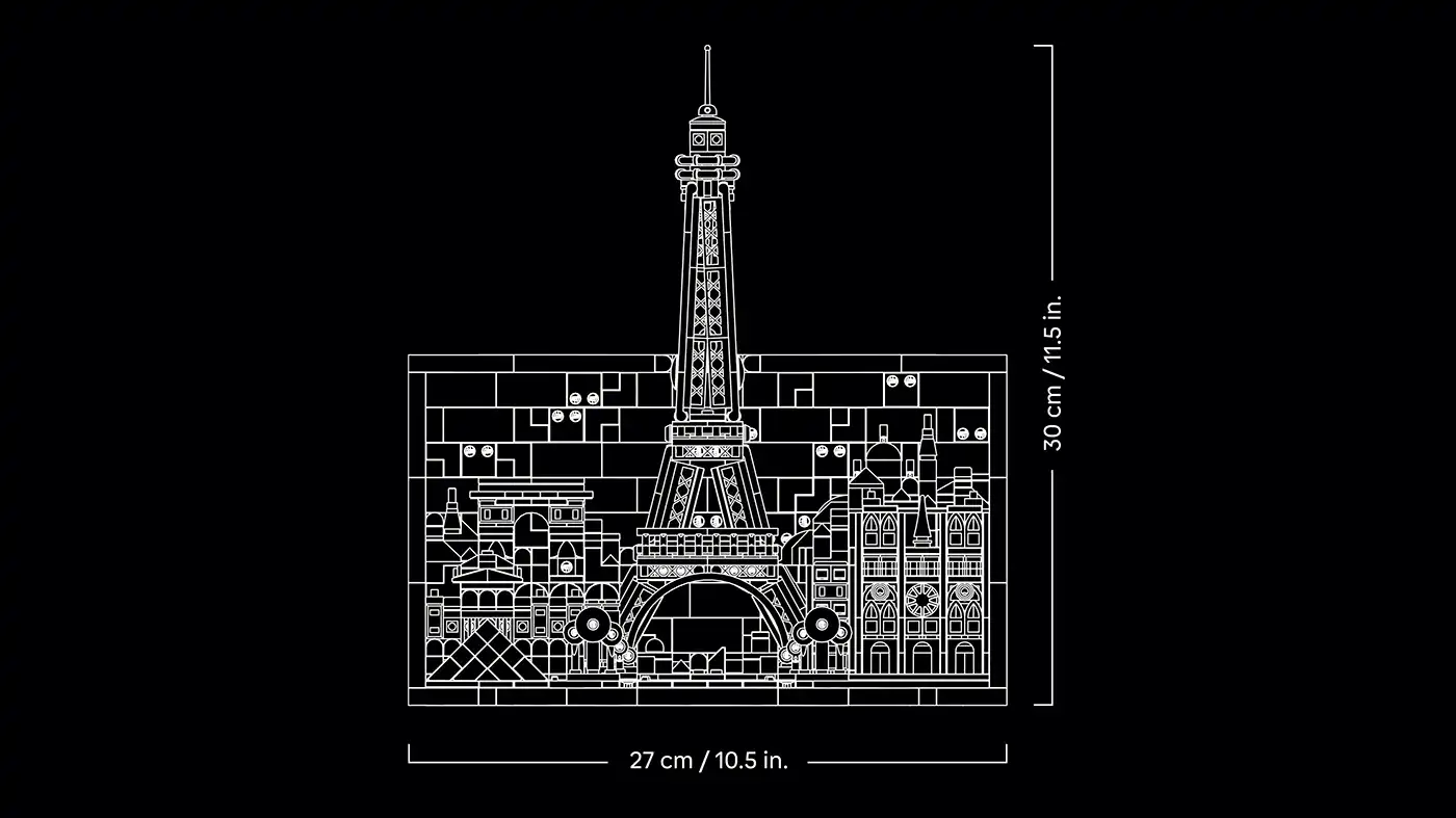 MÉRETEK – A 30 cm magas, 27 cm széles és 5 cm mély, Párizs városképét művészien megörökítő szett 958 építőelemmel nyújt kreatív kikapcsolódást