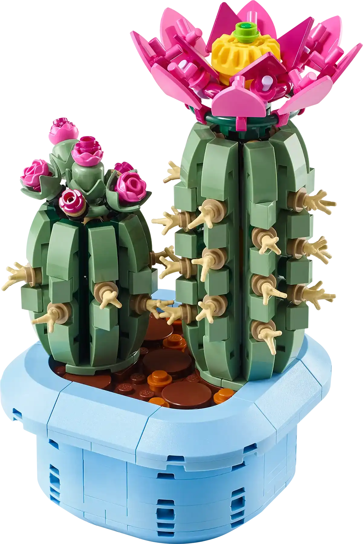 A gyerekek kreativitása csak úgy virágzik majd, miközben megépítik a 2 kaktuszmodellt! A nagyobb LEGO kaktusz teljes virágzásban van, a tetején rózsaszín virággal és a sárga közepével, míg a kisebb LEGO kaktusz különböző növekedési stádiumban lévő rózsaszín rügyekkel rendelkezik. A kaktuszok zöld színűek, és mindkettő pasztellkék virágcserépben van elhelyezve, így a gyerekek könnyen kiállíthatják őket a hálószobájukban vagy otthonukban, miután elkészítették őket.