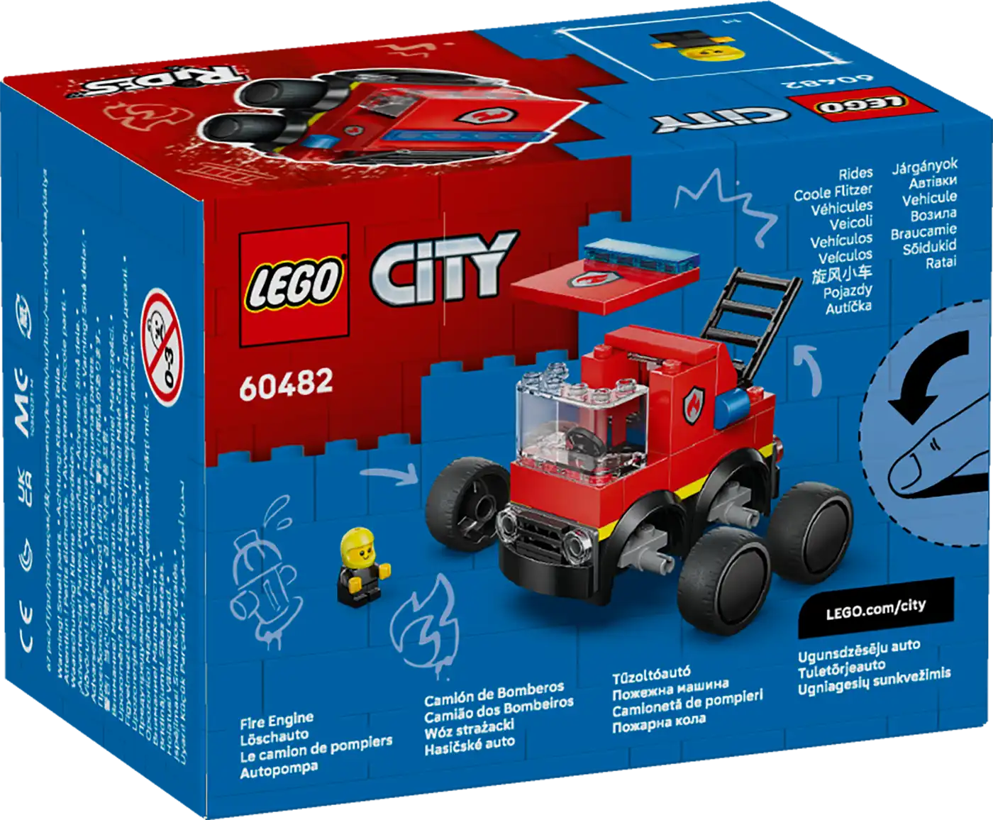 A LEGO City Járgányok sorozat részét képező kis tűzoltóautó ideális a kis építők számára. Akár születésnapi meglepetésként, vagy más alkalmakra is tökéletes választás ez a kis ajándék azoknak a fiúknak, lányoknak és gyerekeknek, akik szeretik az autós és fantáziadús játékokat. Kombináld más (külön kapható) LEGO City készletekkel a még nagyobb szórakozásért!