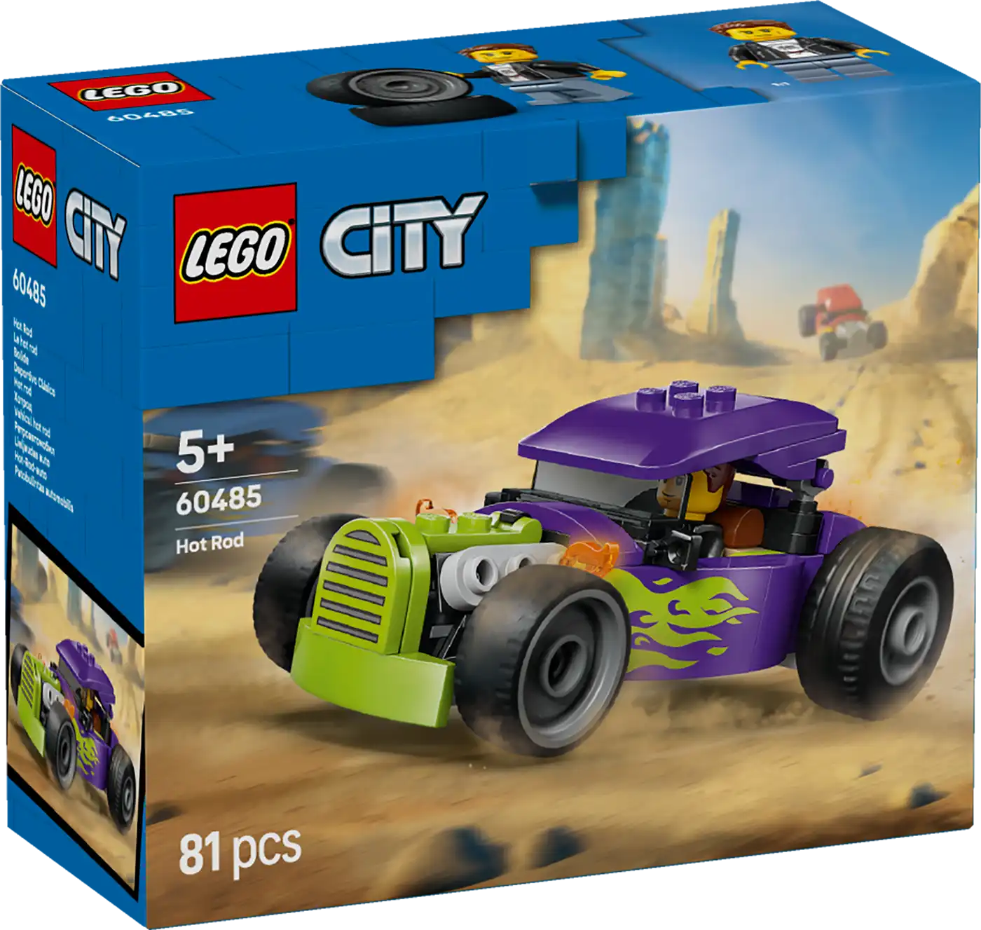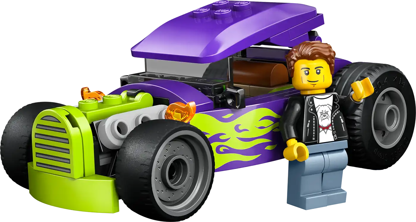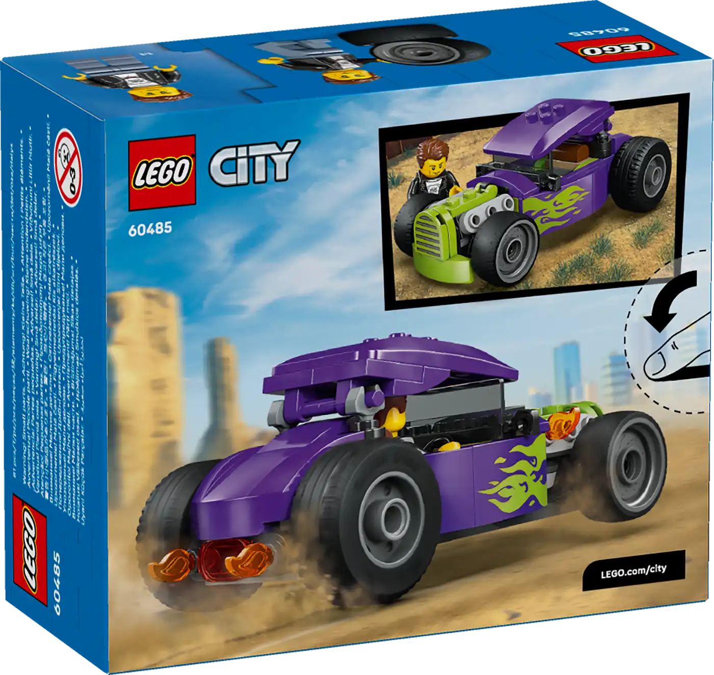 Az 5 éves vagy idősebb fiatal autóverseny-rajongók máris bekapcsolhatják az övüket, és belevethetik magukat a nagy sebességű gyorsulási versenyekbe a LEGO® City Hot Rod autó játékkal (60485)! Ez a modellautó-készlet nagy izgalmakat tartogat, részletes versenyzői jellemzőkkel, többek között túlméretezett hátsó gumiabroncsokkal, felnyitható tetős pilótafülkével és hűvös lila színvilággal, neonzöld lángokkal. Egyszerűen csak add hozzá a sofőr minifigurát a gyors tempójú fantáziadús játékhoz!