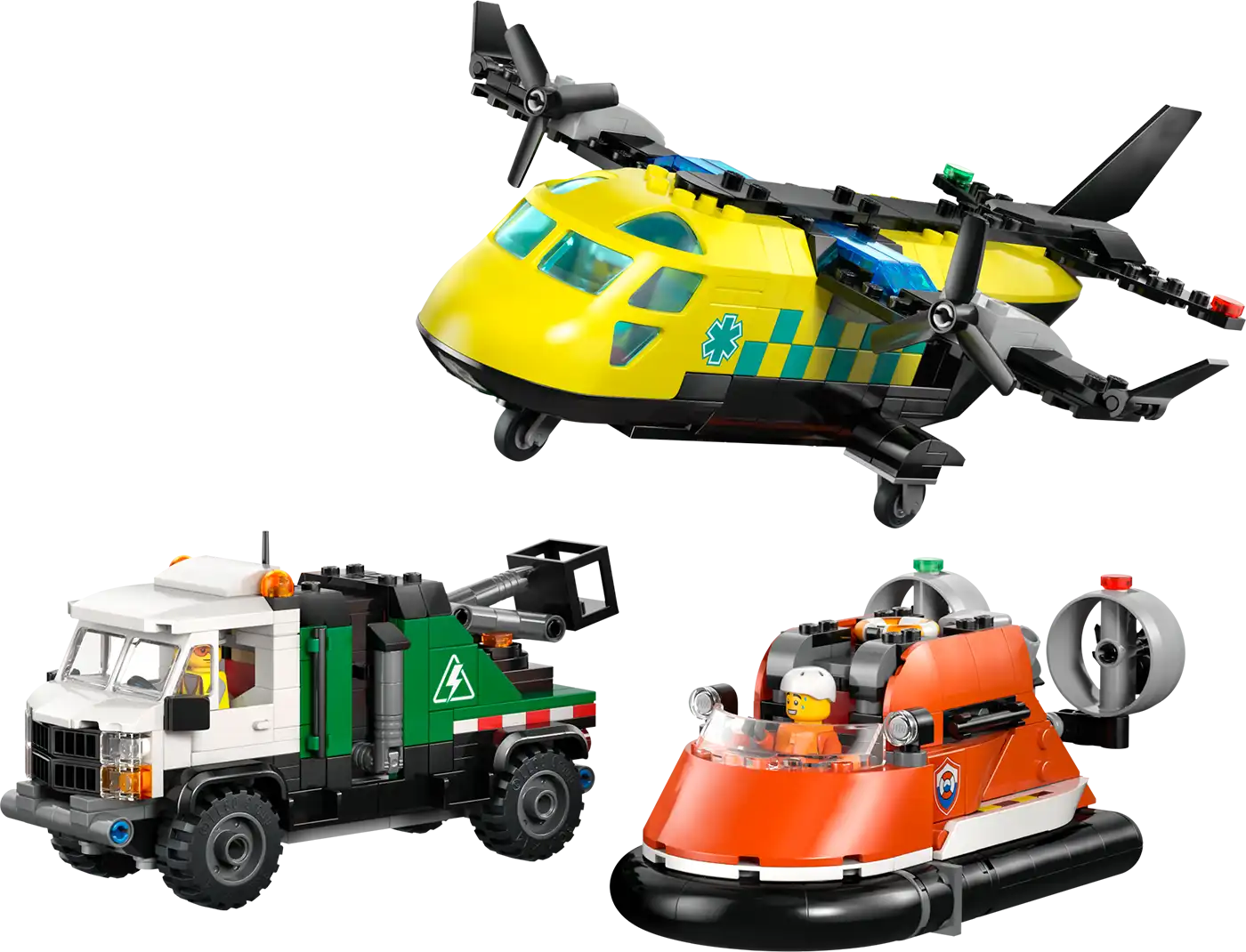 Ezzel a repülőgépet, légpárnás járművet és teherautót tartalmazó építőkészlettel a gyerekekre intuitív építési élmény vár a LEGO Builder appban, hiszen 3D-s utasításokkal felnagyíthatják és elforgathatják alkotásaikat, miközben elmenthetik és nyomon követhetik előrehaladásukat. A készlet 990 elemet tartalmaz.