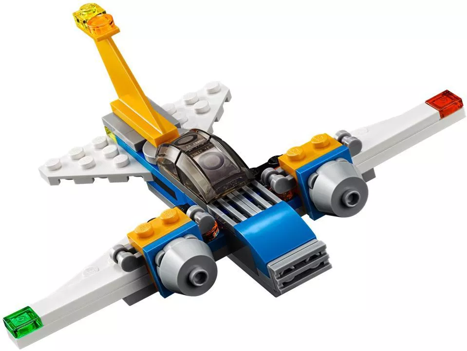 LEGO 31042 - LEGO® Creator Szuper repülő. Kapcsolj szuperszonikus sebességre ezzel a lenyűgöző sugárhajtású géppel, amelyen sötétsárga és fehér színeket láthatsz, és függőleges iker stabilizátorokat, nagy légbeszívókat, navigációs fényeket és nagy motorokat találsz rajta! Kapcsold be a mozgatható szárnyakat, száguldj végig a kifutópályán és emelkedj a levegőbe! Amikor készen állsz az újabb építési feladatra, alakítsd át futurisztikus sugárhajtású géppé vagy egy szuperklassz repülővé!