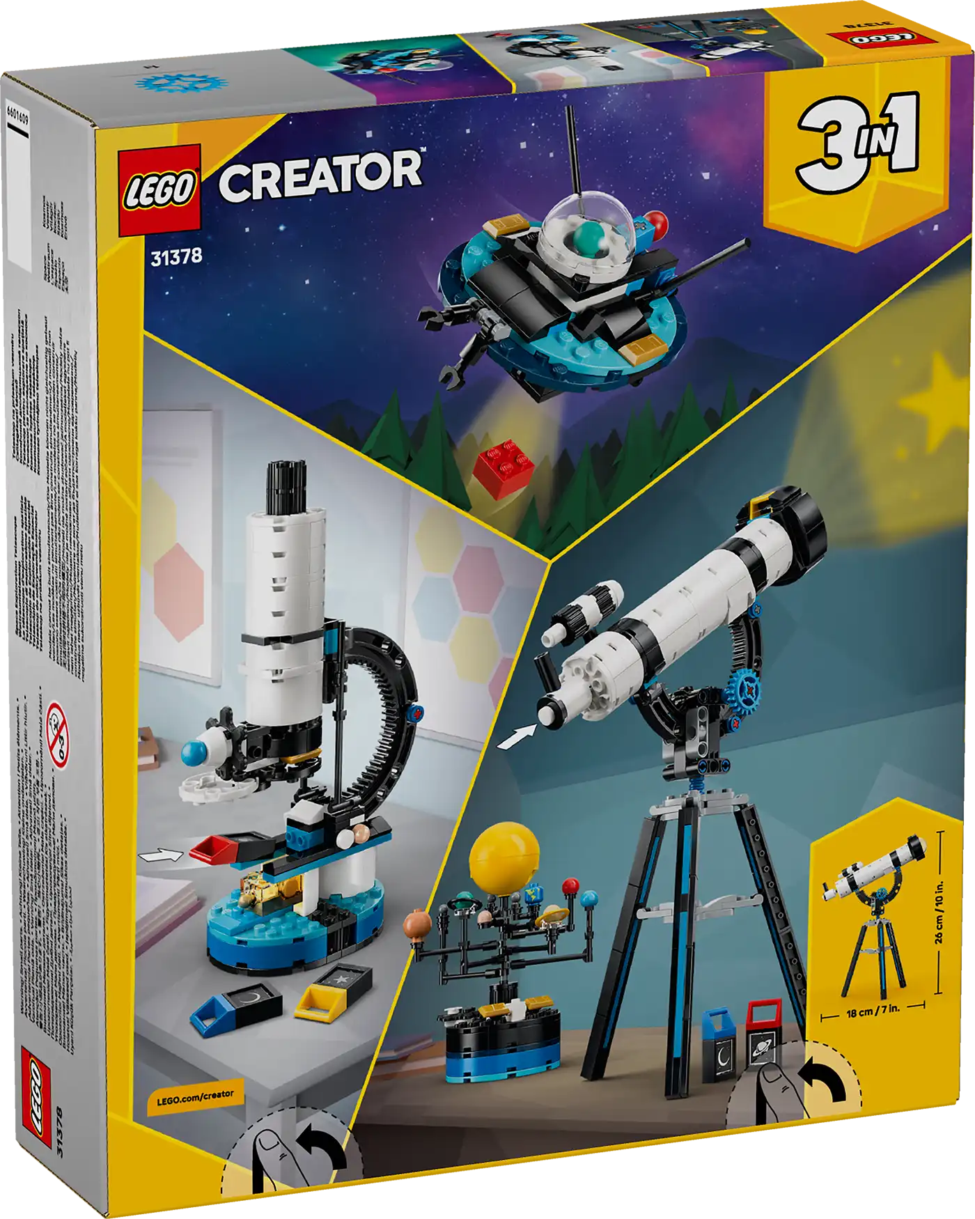 A LEGO® Creator 3 az 1-ben Csillagászati távcső (31378) építőkészlet segítségével a 8 éves vagy nagyobb fiúk és lányok elmerülhetnek a tudomány és a világűr iránti szenvedélyükben. Ennek a részletgazdag STEM-játéknak az építőelemei 3 különböző építési lehetőséggel várják a gyerekeket.