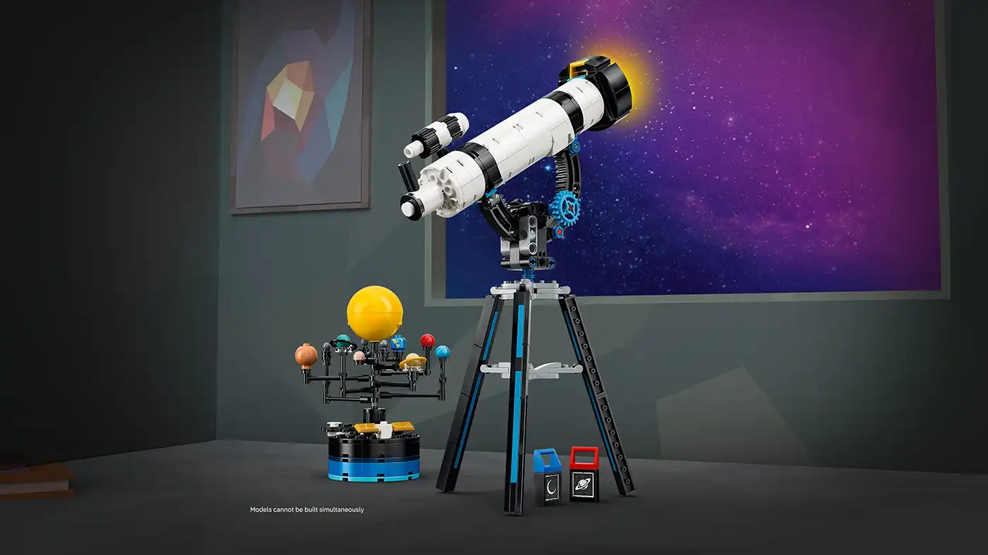 A gyerekek megépíthetnek egy háromlábú állványon álló, állítható távcsövet és egy Naprendszer-modellt, amelyen 7 bolygó kering a Nap körül. Majd ezt átalakíthatják egy állítható játék mikroszkóppá vagy egy beállítható antennával és kihajtható lábbakkal (a kiállíthatóság érdekében) ellátott ufómodellé.