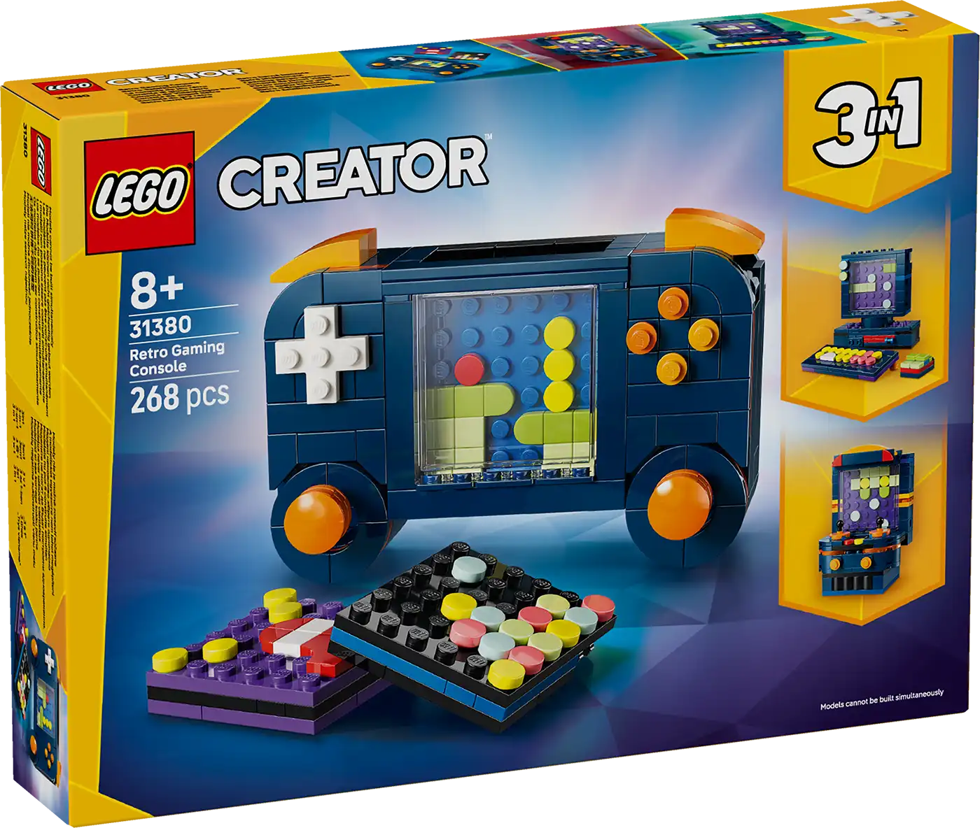 A 8 éves vagy nagyobb gyerekek és gamerek örömmel fogják megépíteni és kiállítani a LEGO® Creator 3 az 1-ben Retró játékkonzol (31380) építőkészletet, amivel a játék is izgalmas. Ennek a részletgazdagon kidolgozott, szórakoztató gamer szobadekorációnak az építőelemei 3 különböző építési lehetőséget kínálnak.