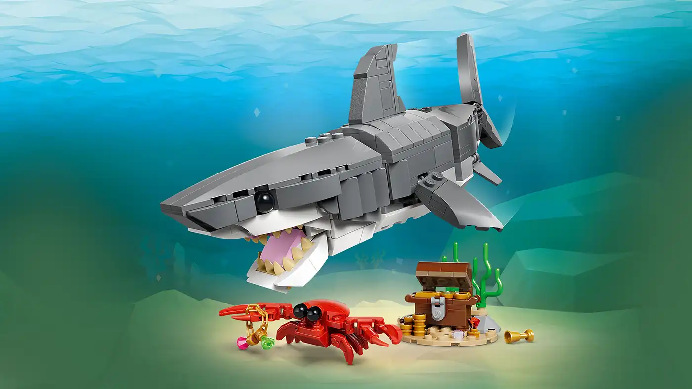 Építhetnek egy beállítható játék cápát, amit egy kincsesládával és egy rákkal együtt állíthatnak ki az állványra. Majd átépíthetik egy tengeri növényekkel díszített állványon lévő ördöghallá, vagy egy beállítható ördögrájává, ami egy kagylóhéjjal ellátott állványon pihen. Ha véget ért az építés és a vidám játék, akkor bármelyik modellt kiállíthatod szobadekorációként a polcon vagy az asztalon.