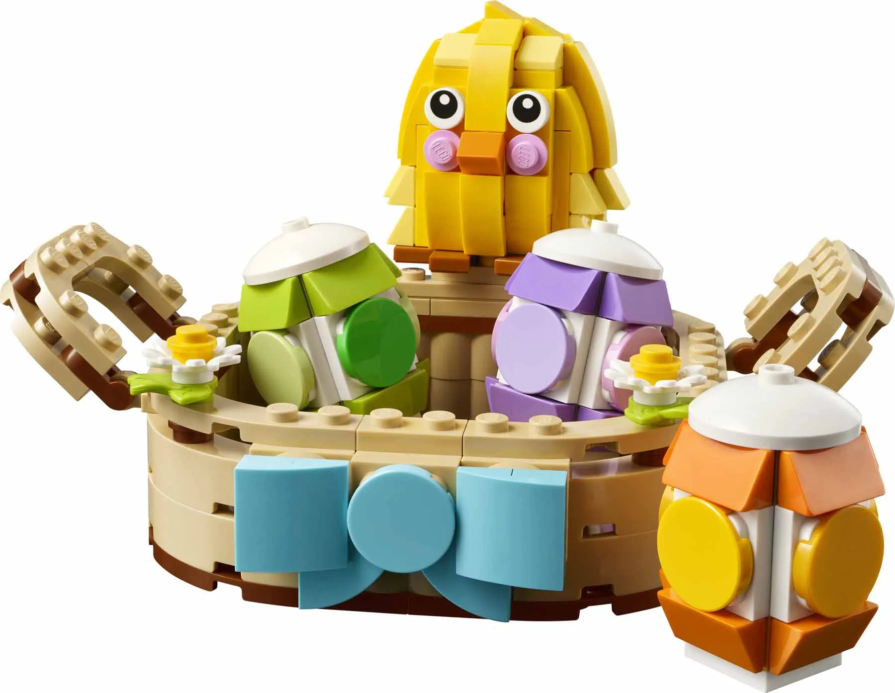 Ez a húsvéti dekorációs LEGO szett 3 pasztellszínű húsvéti tojást, egy aranyos csibét és 2 tavaszi virágot tartalmaz, így remek húsvéti ajándék lányoknak és fiúknak, akik imádják a kiállítható építőkészleteket. A gyerekek kivehetik a kosárból a húsvéti kiegészítőket, amikkel mókás húsvéti történeteket játszhatnak el, majd visszatehetik őket a kosárba, hogy kiállítsák az otthonotokban.