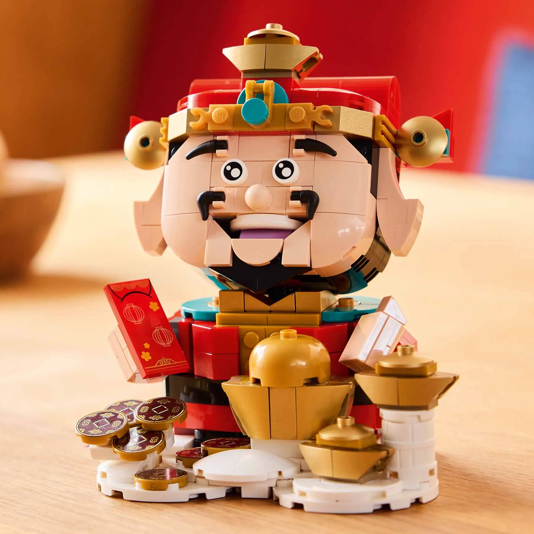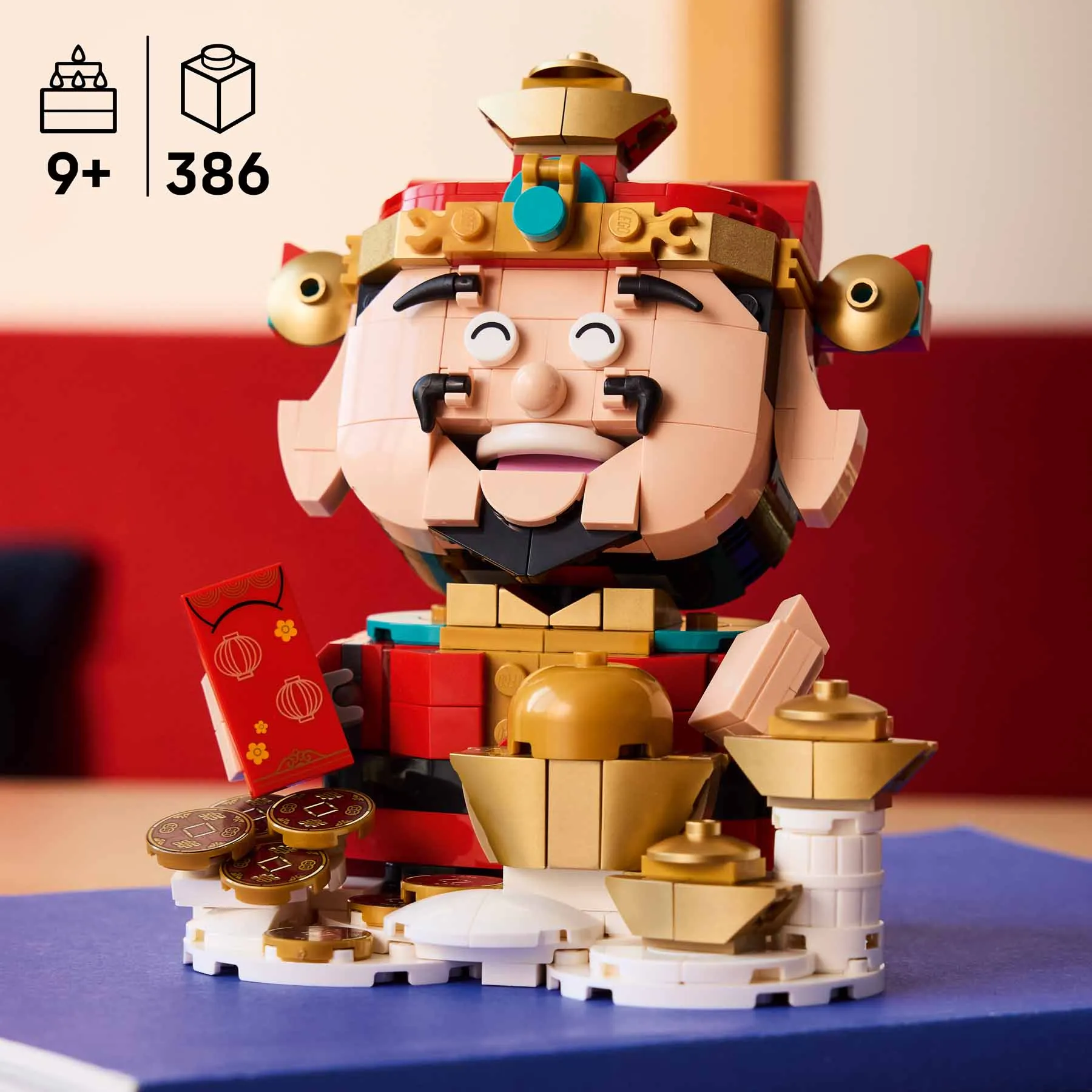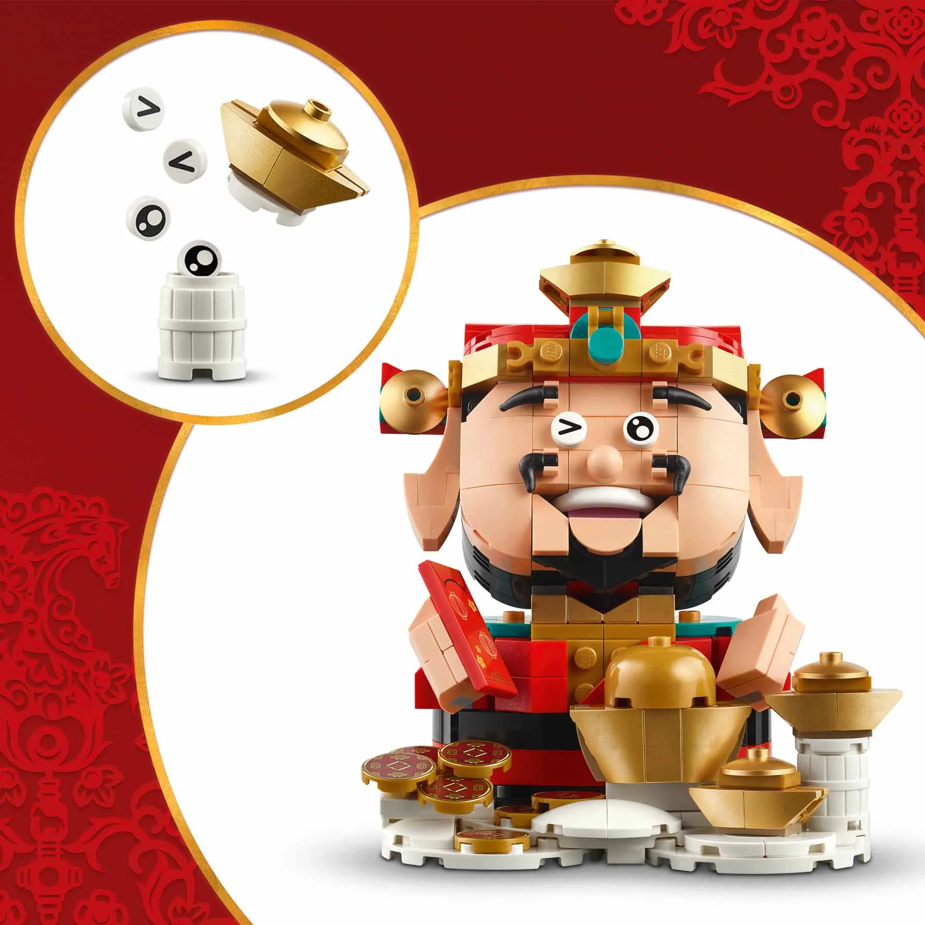 A gyerekek rengeteget szórakoznak majd, miközben megépítik a A szerencse mestere LEGO változatát és felfedezik a klassz részleteit. A gyűjthető modell a tradicionális piros és arany öltözetet viseli, a testreszabást a 3 pár szemelem biztosítja, a titkos rekesz pedig a tartalék szemek tárolására szolgál. A gyerekek olyan szerencseszimbólumokat fedezhetnek fel a modell körül, mint az aranytallérok és a piros borítékok. A megépített készletet kiállíthatod a kínai újév alkalmából, de akár az év minden napján gyönyörködhetsz benne.