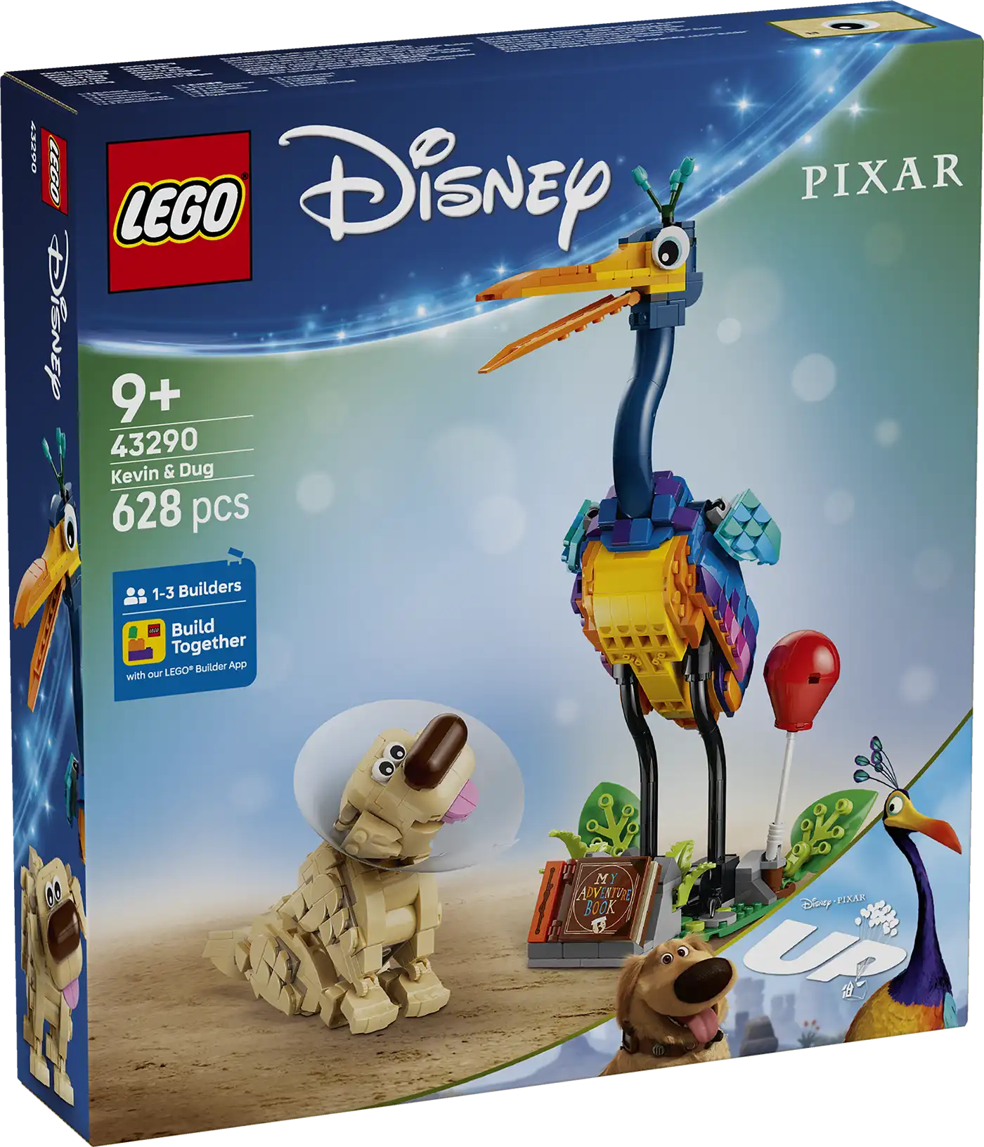 A LEGO® ǀ Disney és Pixar Kevin és Dug (43290) játéképítő-készlettel a 9 éves és idősebb gyerekekre izgalmas kalandok várnak. Ez a Fel! című animációs film alapján készült készlet a LEGO ǀ Disney és Pixar építőjátékok sorozatában először tartalmazza Kevin, a madár és Dug, a kutya állatfiguráit. A készlethez tartozik egy állvány mozgatható levelekkel és hely a My Adventure Book című könyvnek, egy piros léggömb, egy védőgallér, Dug speciális nyakörve és még sok más. A figurák inspirálják a fantáziadús játékot, vagy kreatív dísztárgyként szolgálnak a polcon vagy az asztalon.