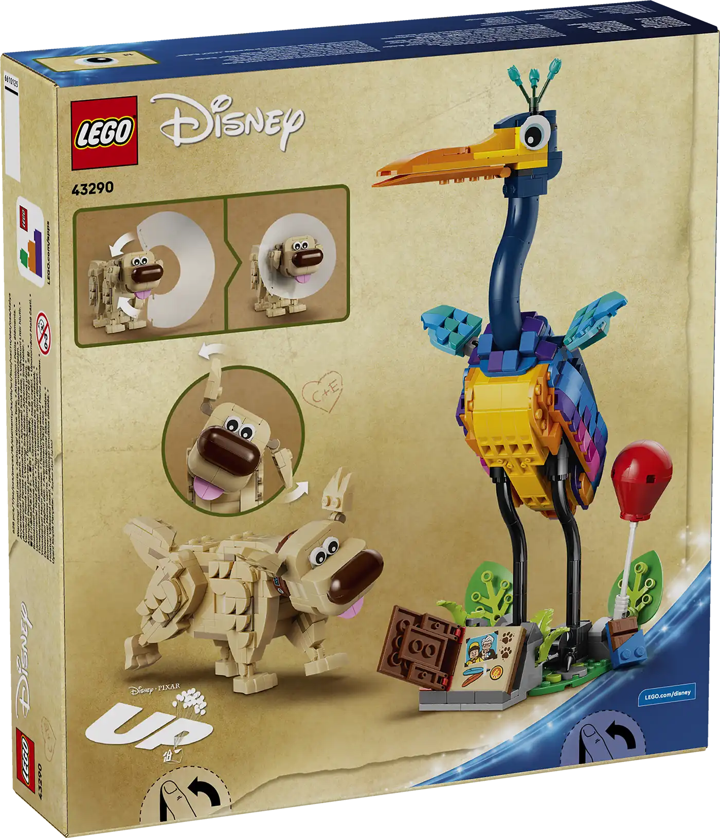MÉRETEK – Ez a 628 elemből álló LEGO® ǀ Disney és Pixar építőjáték-készlet tartalmazza Kevint, aki a mellékelt állvánnyal együtt 29 cm magas, 12 cm széles és 16 cm mély.