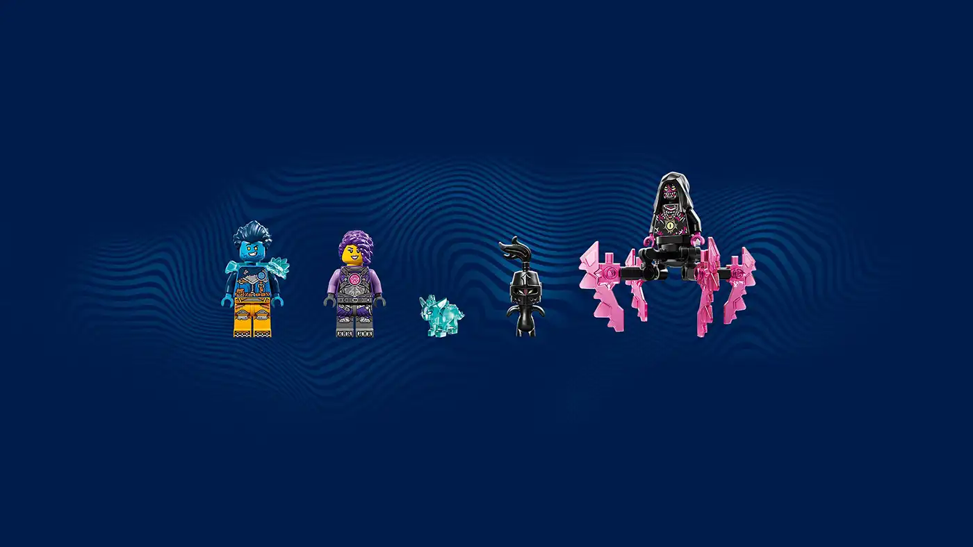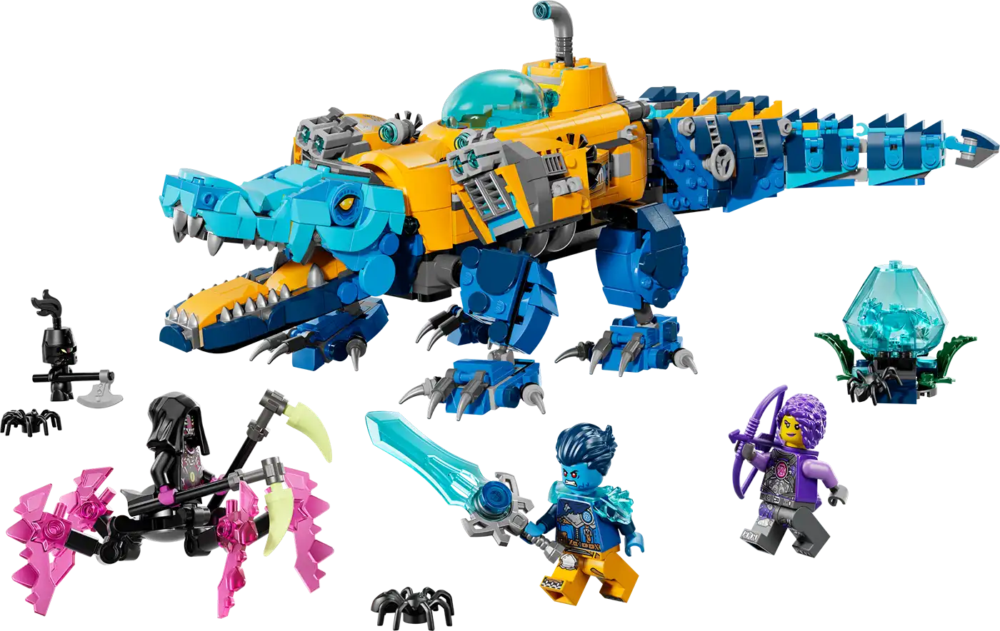 A tengeralattjáró dupla lövegekkel és rejtett rekesszel rendelkezik, valamint egy minifigurának megfelelő pilótafülkét is rejt. Krokodilmódban mozgatható feje, lábai és farka van, míg sasmódban mozgatható szárnyai és szárnytollai vannak, amelyek a hajtóművekből nyúlnak ki. A fantáziadús játékot Logan, Zoey és Arika minifigurái, valamint egy Lidérc figura, 2 pók és egy gyűjthető Kék Kincslény figura teszi teljessé. Loganhez egy gyűjthető kék kard tartozik, Zoey-nak íja van, Arikának pedig kaszája.