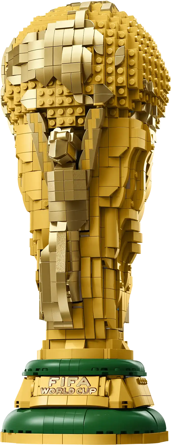 A 12 éves és idősebb sportcsillagok nagy örömmel fogják összeállítani ezt a LEGO kockákból készült világbajnoki trófea replikát, és felfedezni annak hiteles részleteit. Két emberalak látható rajta, akik a Földet, az ikonikus földgömböt és az alján található emléktáblát tartják a korábbi világbajnokok nevét viselve. A LEGO trófea felső földgömbjét kinyitva a 2026-os labdarúgó-világbajnokság minifiguráját láthatjuk, aki egy mini-trófeajátékot és a 2026-os világbajnokság logóját ábrázoló hátteret tart a kezében. A jelenetet hagyhatod a trófeában, de ki is veheted, és a trófea mellé állíthatod.