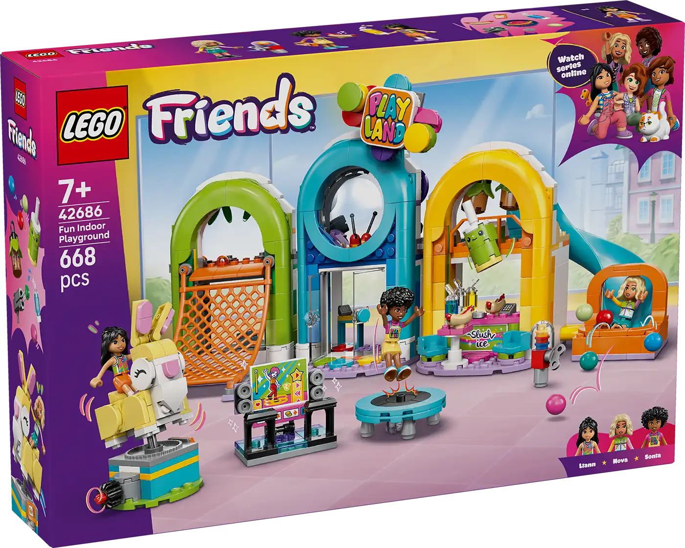 Szárnyaljon a lányok és fiúk fantáziája, miközben felfedezik a 7 éves vagy nagyobb gyerekeknek készült LEGO® Friends Vidám játszóház (42686) szettet. Az izgalmakkal teli készlet 3 figurát és rengeteg kiegészítőt tartalmaz, akadályokkal, kihívásokkal és szórakoztató járgányokkal.