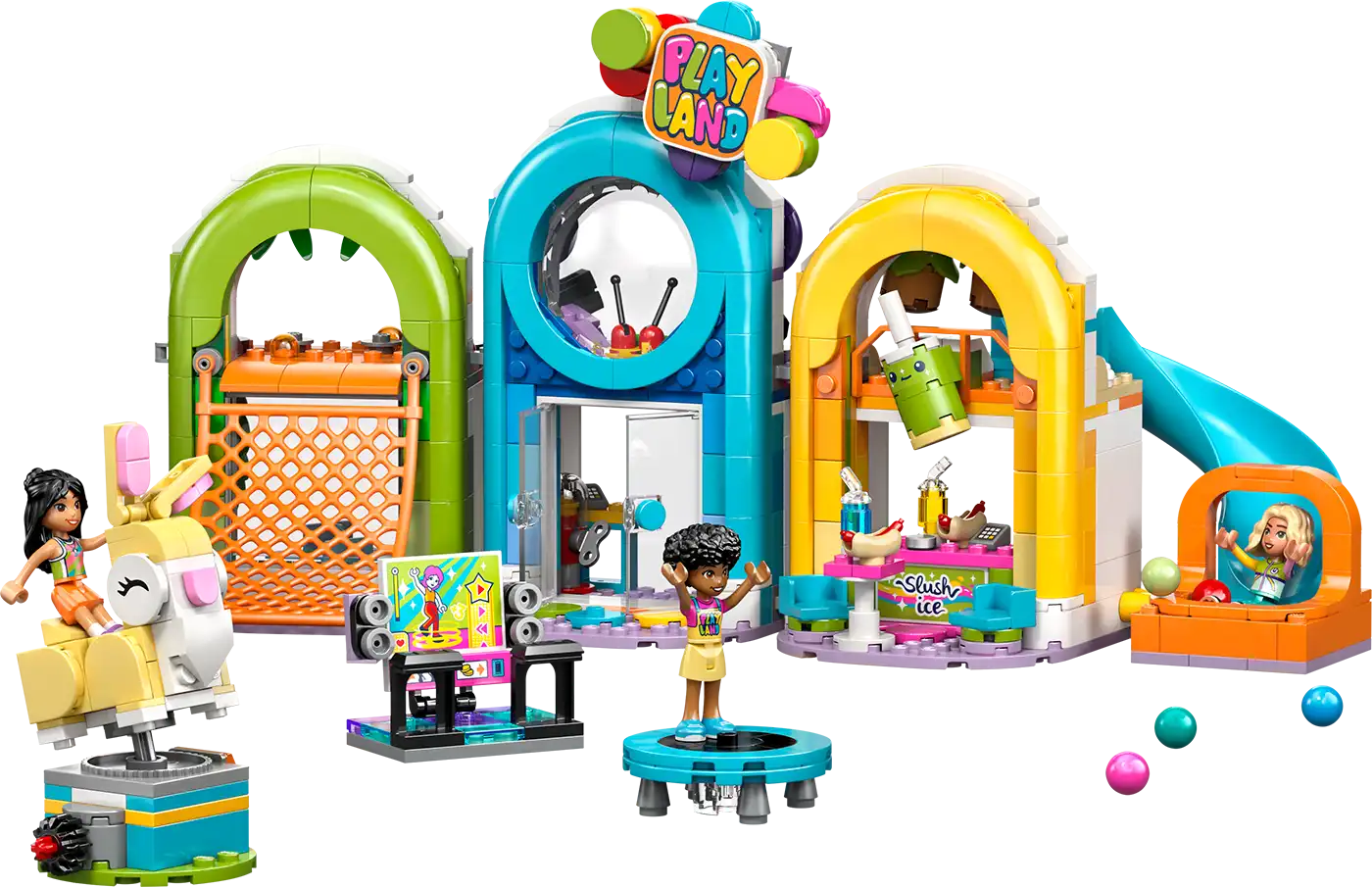 A gyerekek nem akarnak majd elmenni ebből a játszóházból, mert órákon át élvezhetik a kreatív történetmesélős játékot, és kalandokat találhatnak ki a szereplőknek. A játszóház minden sarkában szórakoztató pillanatok várnak, például mászóháló, akadálypálya, körhinta, labdamedence, csúszda, nyuszijárgány és büfé. A szórakozás még több kreativitást ösztönző részlettel folytatódik, például táncgéppel, trambulinnal, hot dogokkal, jégkásával, rágógumi-automatával és pénztárgépekkel.