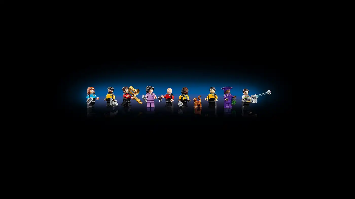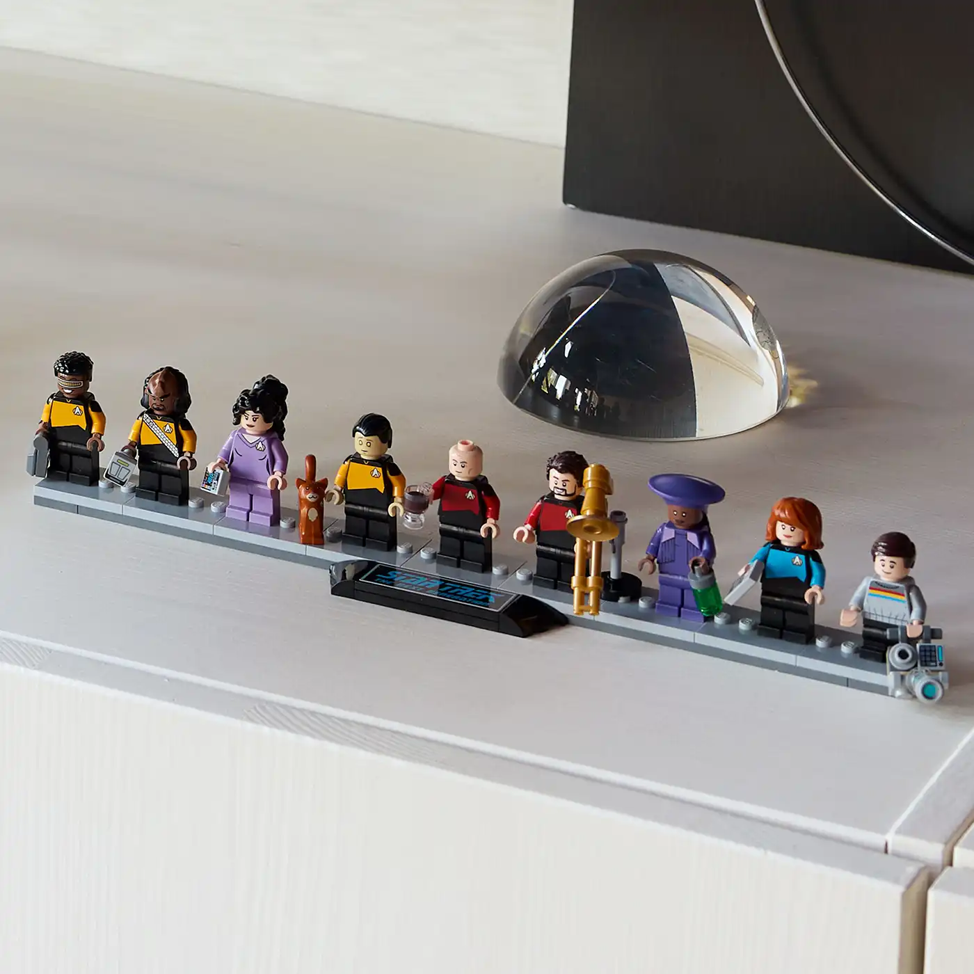 A szett 9, tematikus kiegészítőkkel ellátott minifigurát és egy Star Trek: The Next Generation feliratú minifigura-állványt is tartalmaz. A minifigurák a következő szereplőket ábrázolják: Jean-Luc Picard kapitány, William Riker parancsnok, Worf hadnagy, Data parancsnokhelyettes, Dr. Beverly Crusher, La Forge parancsnokhelyettes, Deanna Troi tanácsadó, Guinan, a csapos és Wesley Crusher. A kiegészítők közt teáscsésze, állványra helyezett harsona, fézer, trikorder, szerelődoboz, PADD, palack, hordozható vonósugár-generátor és egy macskafigura található.