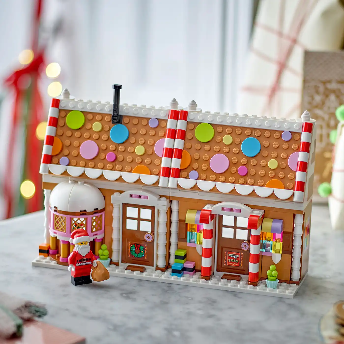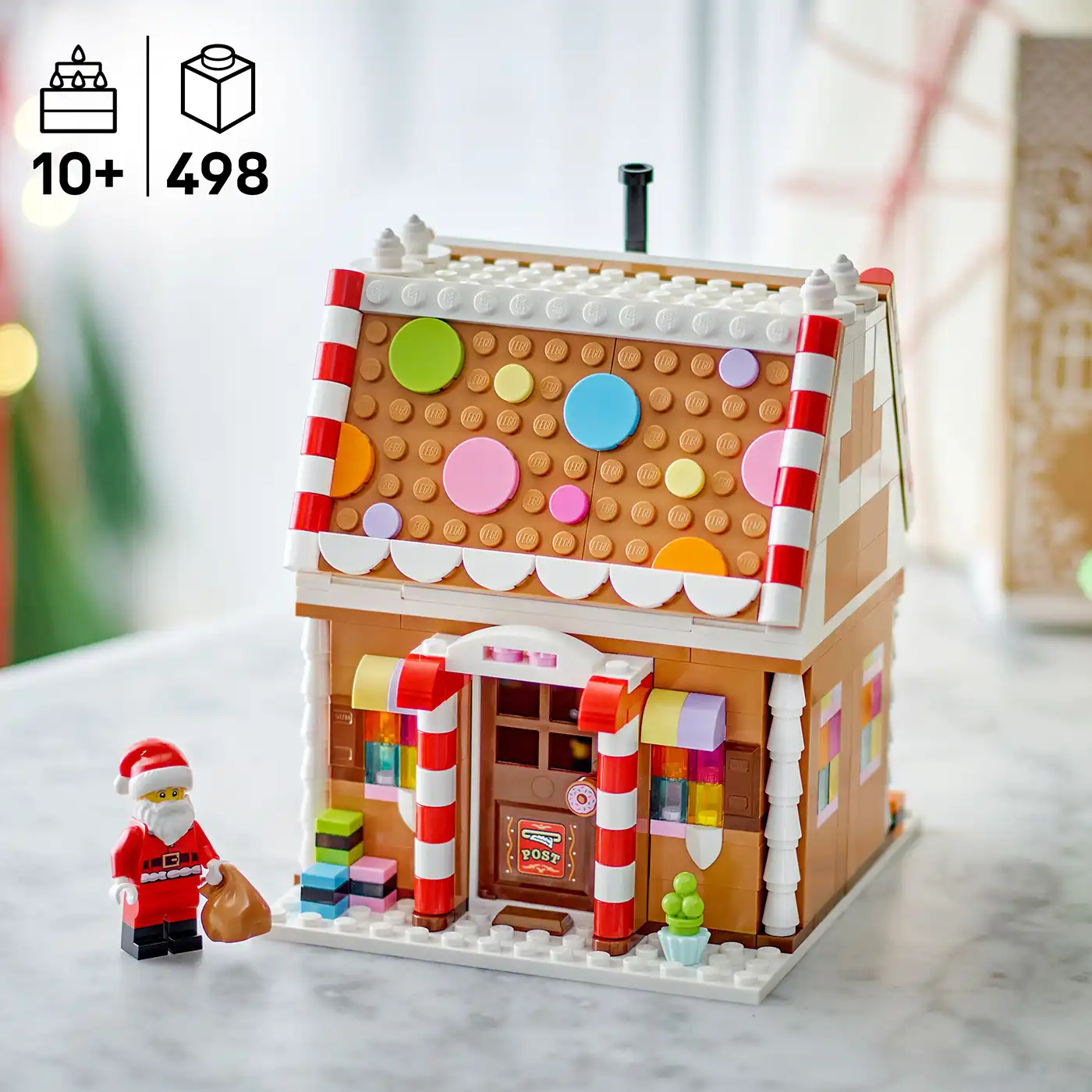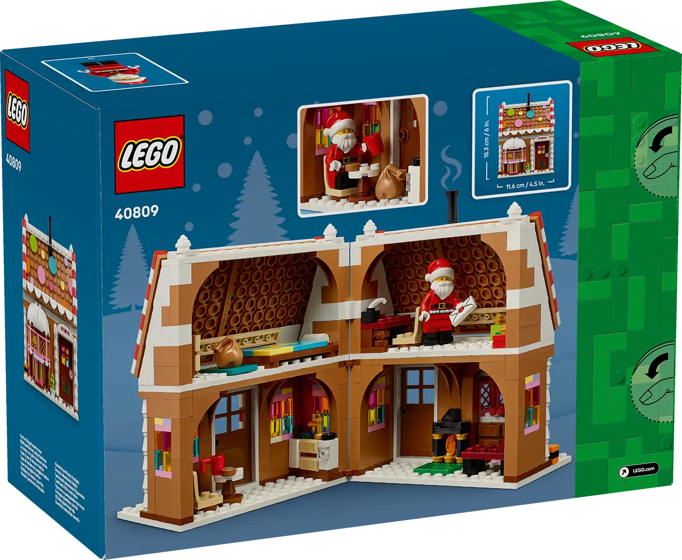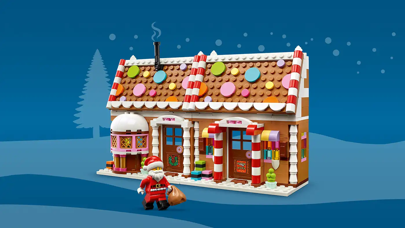 A leendő kis manóknak és pékeknek rengeteg vidámságban lesz részük a játék mézeskalács házikó megépítése során, amin színes díszítéseket és 2 matricát találnak. Utána felfedezhetik a belsejében rejlő varázslatot is. A modell kinyitható, így megnézhetik a Mikulás íróasztalát, a kandallót és a hálószobát, a Mikulás minifigura pedig fantáziadús játékra hívja a gyerekeket, akik izgalmas jeleneteket játszhatnak el az Északi-sarkon. Ha véget ért a játék, akkor ez a karácsonyi játék remek dekoráció lesz, ami minden évben a karácsonyi asztalon díszeleghet.