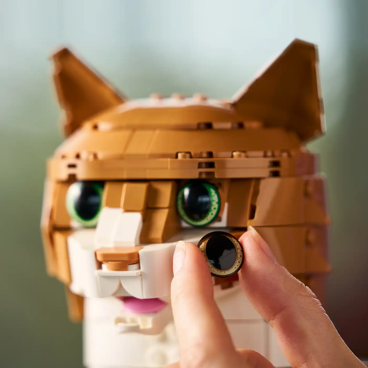 Készítsd el saját imádnivaló, kockákból épített macskás dekorációd ezzel a felnőtteknek készült LEGO® Ideas Vörös macska (21376) kézműves készlettel! Ez a valósághű (és allergiabarát) vörös macskafigura, amely tökéletes ajándék saját magad vagy más macskabarátok számára, zöld vagy barna szemekkel kapható. Szánj időt arra, hogy LEGO stílusban megalkosd a macska jellegzetes mintázatát és szőrcsomóit! Forgasd el a macska fejét, nyisd ki és csukd be a száját, állítsd be a füleit, a mancsait és a farkát, és szabd személyre a megjelenését! Ha szeretnél még egy LEGO macskát, keresd meg a Fekete-fehér macska (21349, külön kapható) modellt, amely remek macskás társ lesz az alkotásod számára! Ez a macskás építőkészlet magával ragadó, önfeledt, kreatív tevékenységet kínál felnőtteknek, függetlenül attól, hogy új vagy-e a LEGO készletek terén, vagy már tapasztaltabb építő vagy. A LEGO Builder appal pedig okosabban építhetsz. Nagyítsd fel, és forgasd el 3D-ben a modelleket, figyeld a haladásodat, és kövesd a részletes digitális útmutatókat! A készlet 1755 elemet tartalmaz.