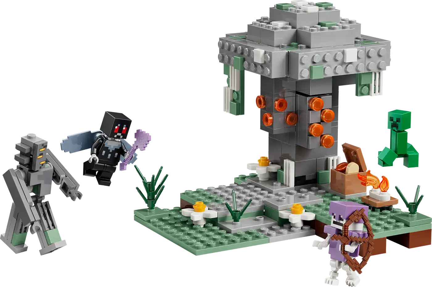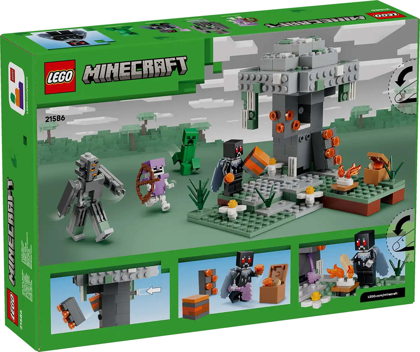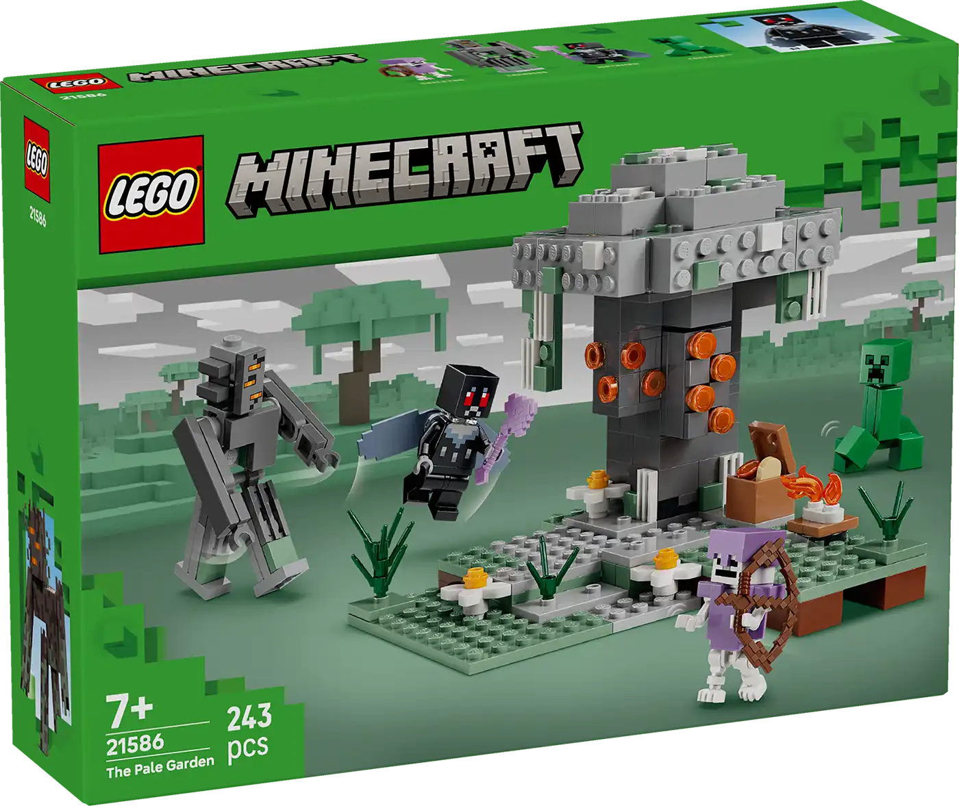 A gamerek beléphetnek a Minecraft® videójáték egyik különös és csodálatos biomjába, A sápadtkertbe (21586) ezzel a 7 éves vagy nagyobb fiúknak és lányoknak készült LEGO® építőjátékkal. Egy kockákból épült creaking támad a hős, szárnyas Mothmanre, miközben egy Creeper™ és egy csontváz is a sápadtkert biom körül ólálkodik.