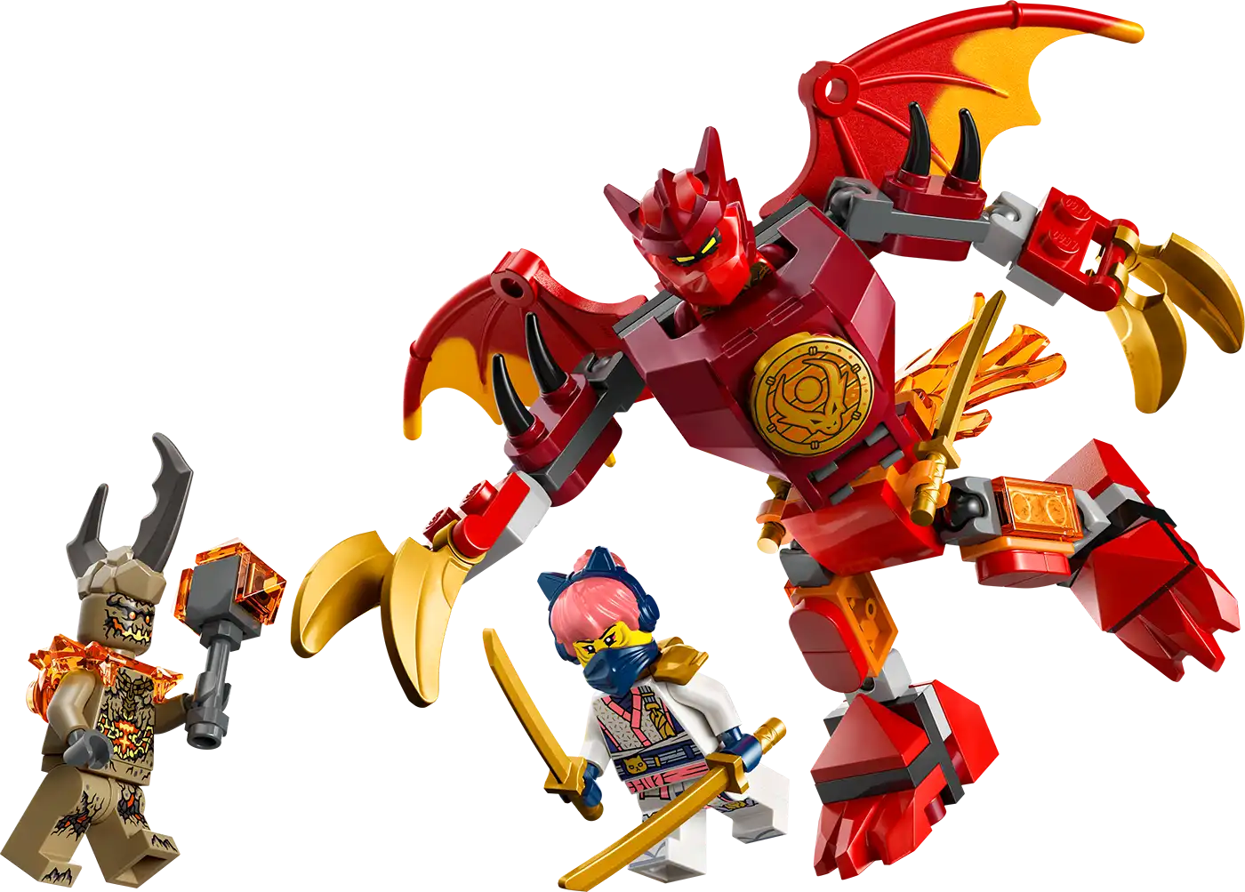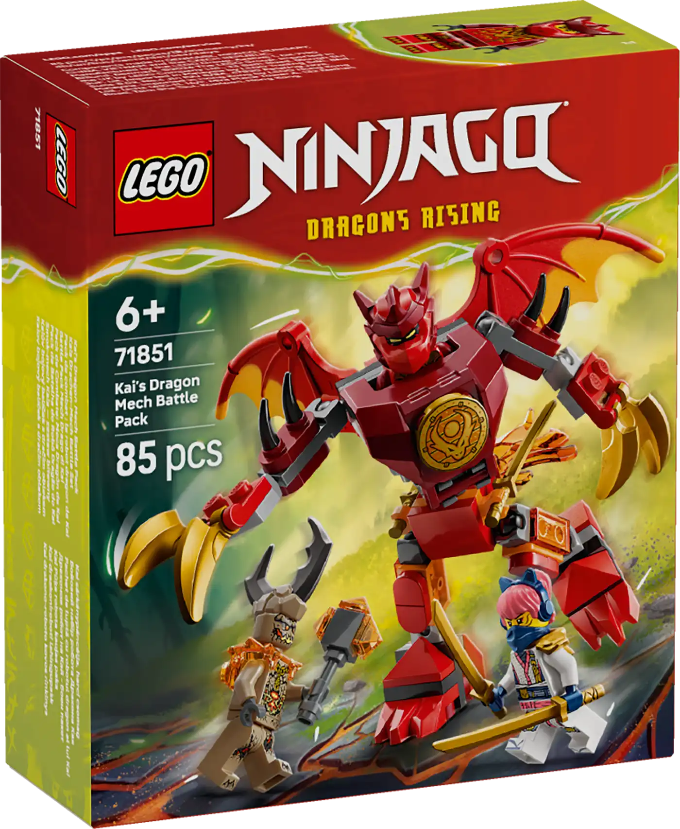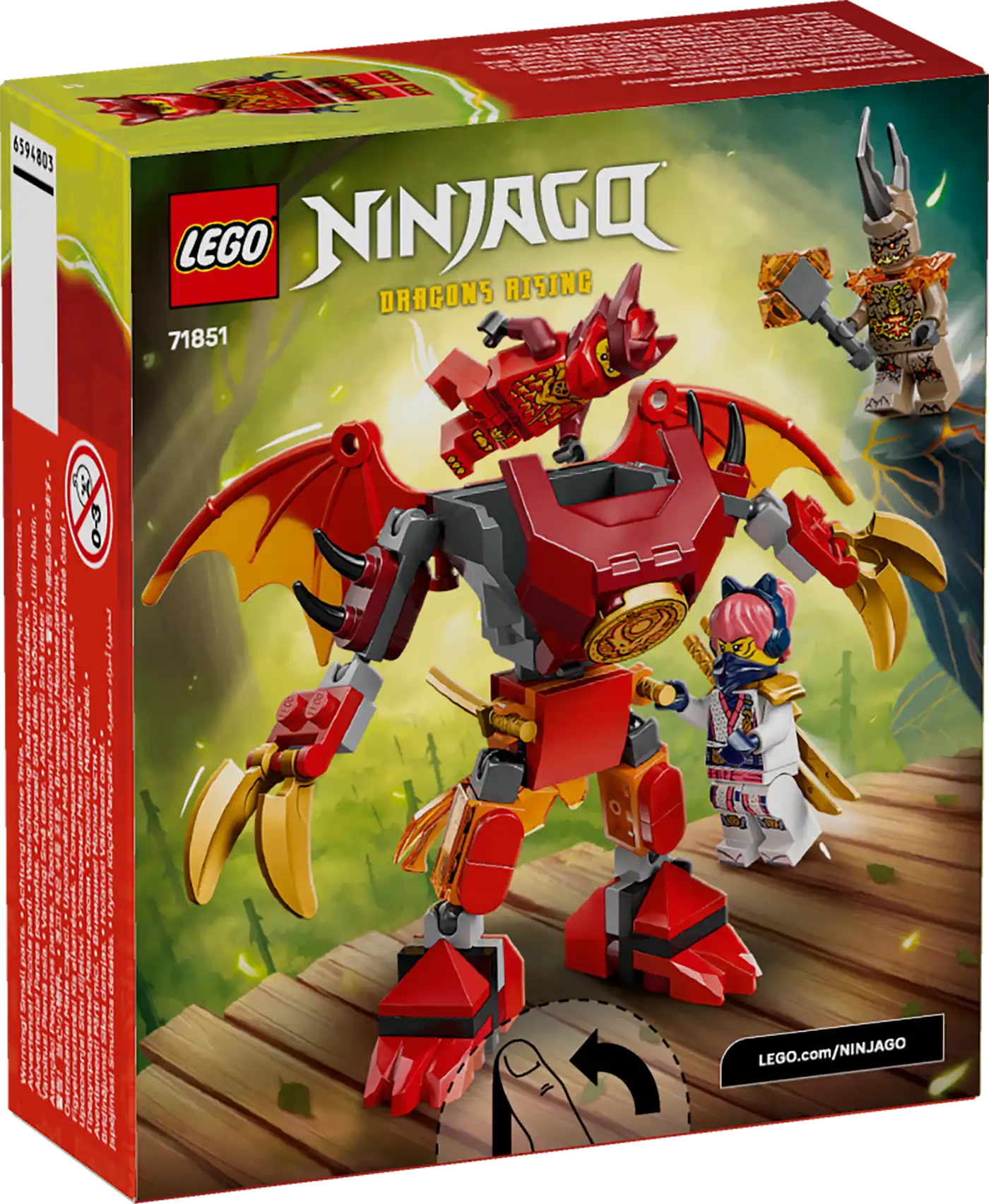 A 6 éves és nagyobb fiúk, lányok és a NINJAGO® Sárkányok birodalma tévésorozat rajongói órákon át élvezhetik a fantáziadús játékot a LEGO® NINJAGO Kai sárkánypáncélja, harci csomag (71851) építőkészlettel! Ez a játékkészlet egy sárkányrobot játékot tartalmaz, amelynek mozgatható lábai, nagy szárnyai, karmai és 360 fokban forgatható felsőteste van, valamint egy pilótafülkéje, amelybe minifigurát lehet helyezni.