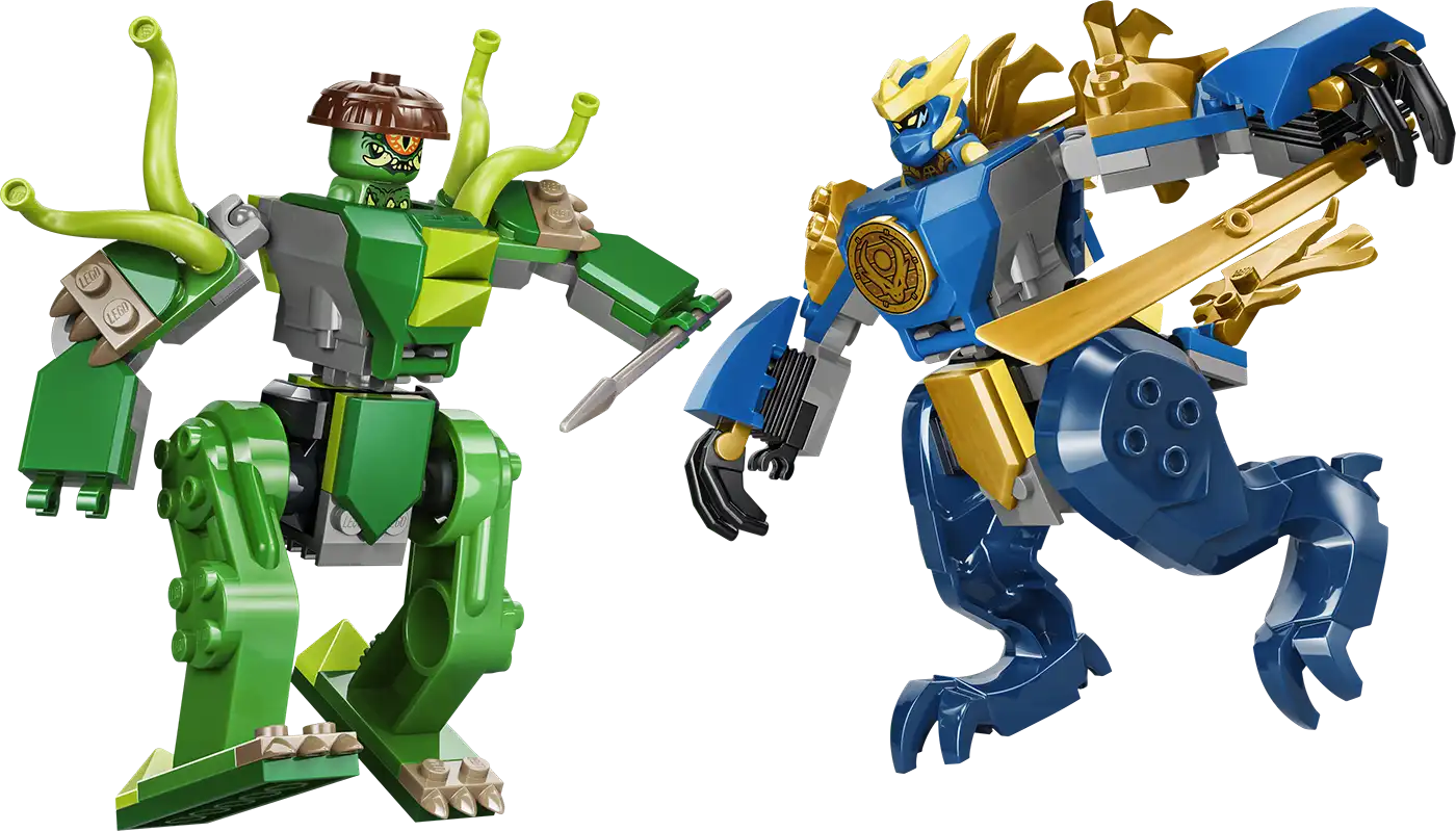 Jay sárkánypáncélja nyitható pilótafülkével rendelkezik a minifigurájának, valamint beállítható farka, szárnya, karja, lába, teste és ujjai vannak, a mutáns szörny harci páncéljának szintén nyitható pilótafülkéje van a minifigurájának, valamint beállítható csápjai, karja, lába és törzse. A készlethez 4 cserélhető fegyver is tartozik, amelyek még izgalmasabbá teszik a játékot: 2 kard, egy lándzsa és egy karomkészlet.