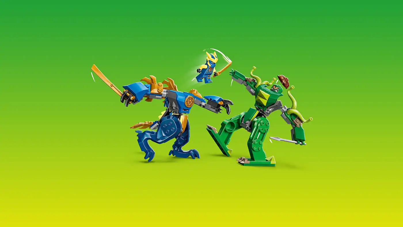 A 4 éves és nagyobb fiúk és lányok ezzel a szórakoztató robotos játékkal megtanulhatják, hogyan kell megépíteni és eljátszani a NINJAGO® Sárkányok birodalma tévésorozat 4. évadának csatajeleneteit! A LEGO® NINJAGO Jay csatája sárkánypáncélban (71853) kalandjáték 2 robottal és 2 minifigurával érkezik.