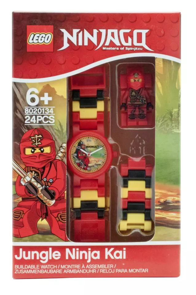 LEGO Kiegészítők - Óra - 8020134 - LEGO Ninjago Jungle Kai karóra összerakható szíjjal. A szíjjal a minifigura egybe van építve, nem vehető le! Cserélhető szíj-darabokkal. Analóg kivitel, nikkel és PVC mentes, cseppálló, két év garancia.