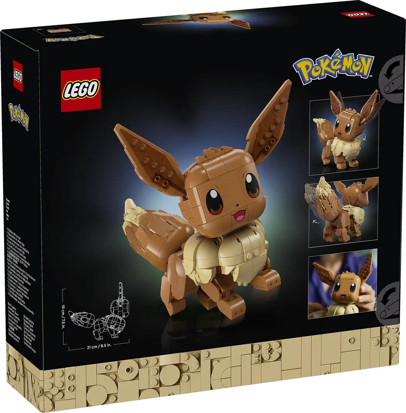 Ez az Eevee figura az aranyos arcával, vidám farkával és füleivel azonnal felismerhető a Pokémon világából. Ennek a normál típusú LEGO Pokémon™ figurának a végtagjai és a feje is mozgatható, a farka pedig hajlítható. Hiteles pozókba állítható, így Eevee úgy nézhet ki, mintha mozgásban lenne, és cselekvésre készülne. Még a fülei is beállíthatók, ami még vonzóbbá teszi ezt a bájos kiállítási darabot.