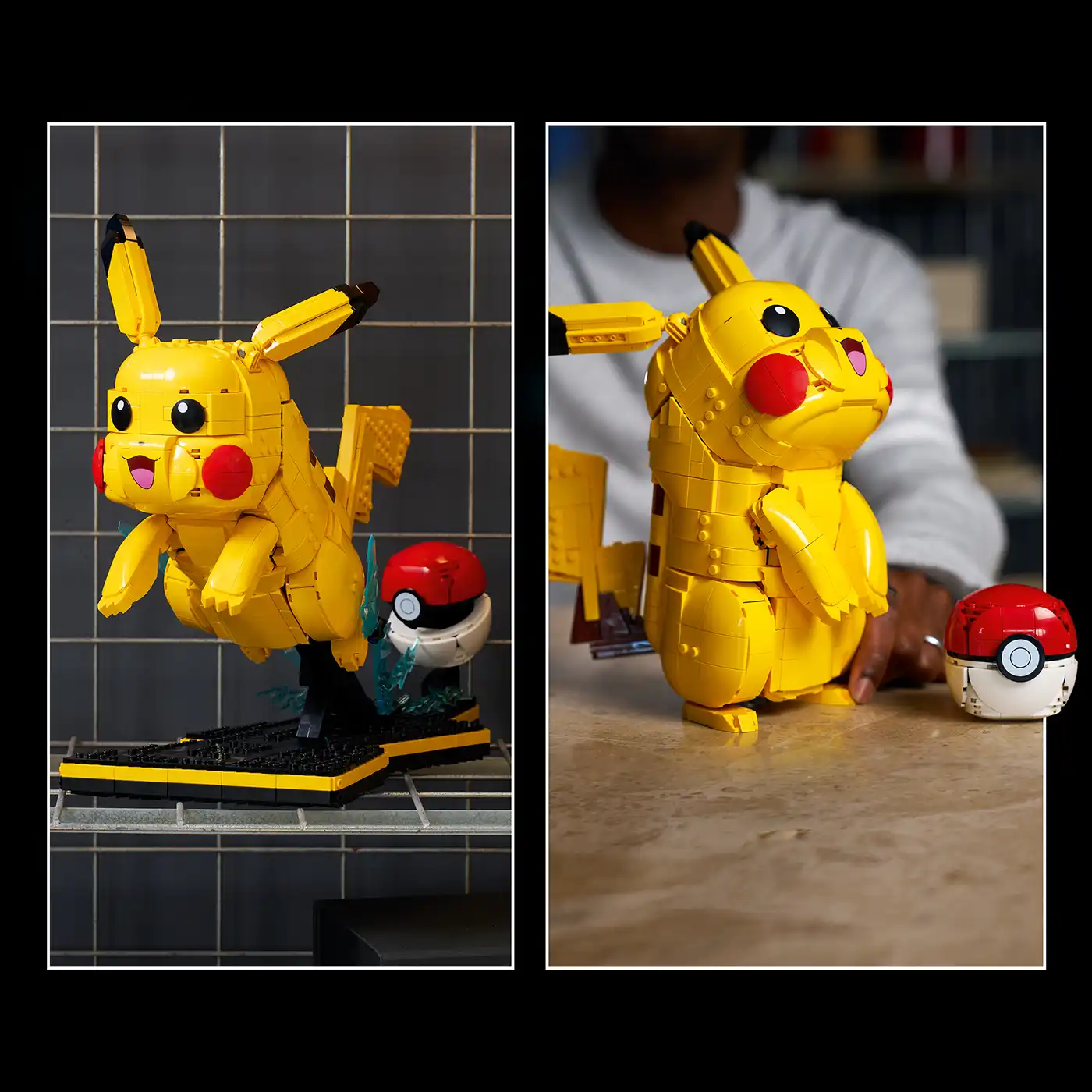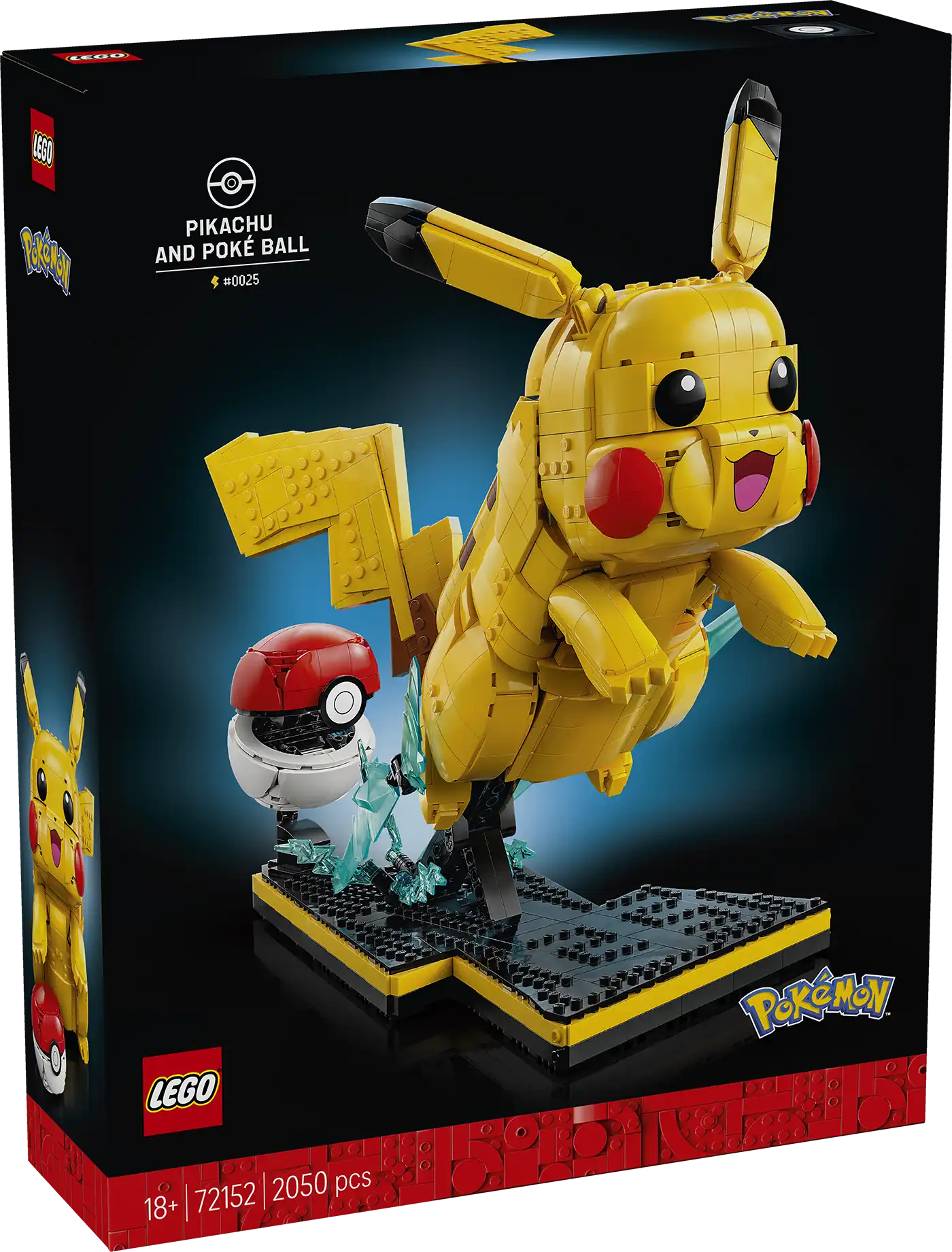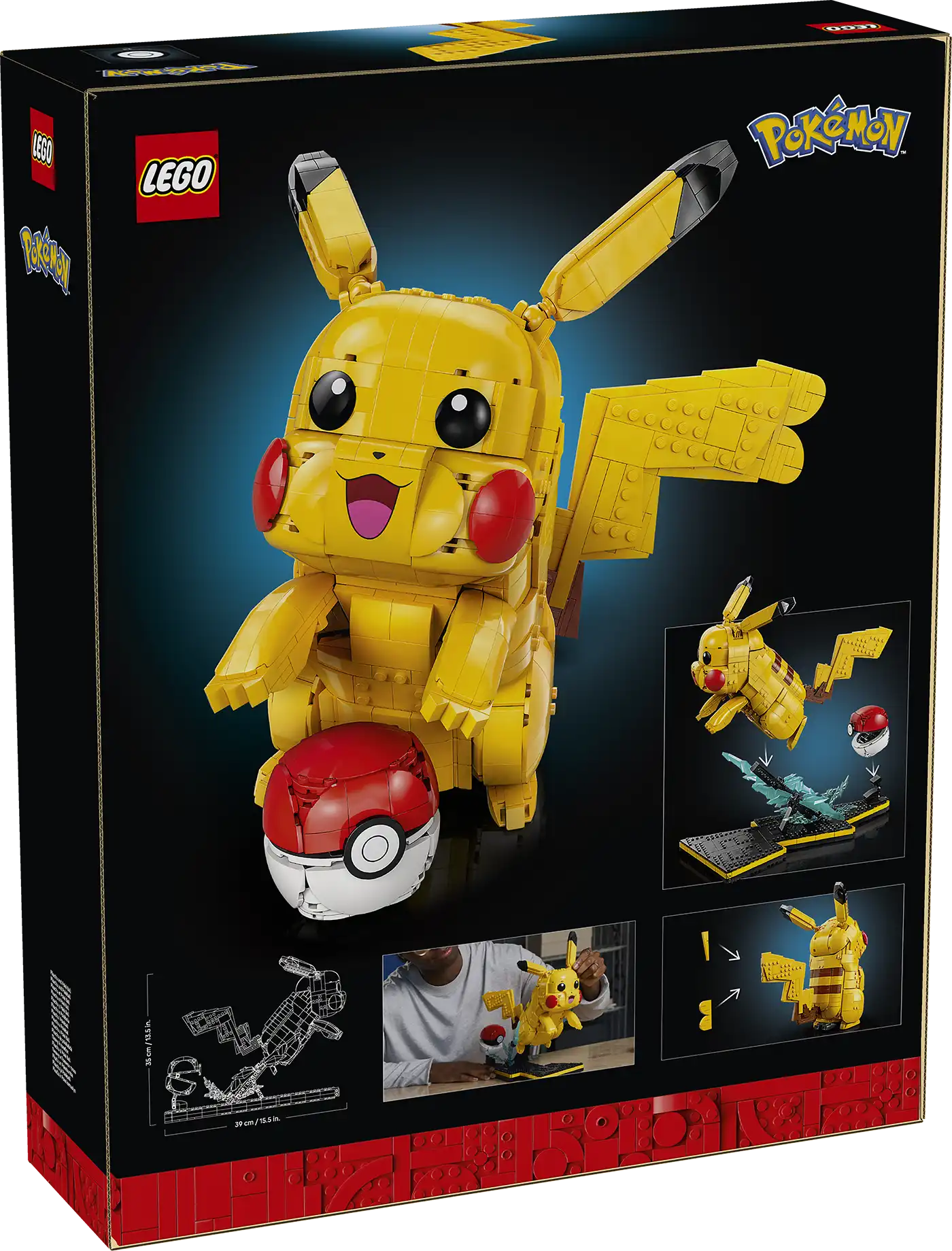 MÉRETEK – Ez a 2050 elemből álló Pikachus ajándék a Pokémon modellfigurával és az állvánnyal 35 cm magas, 26 cm széles és 39 cm mély.