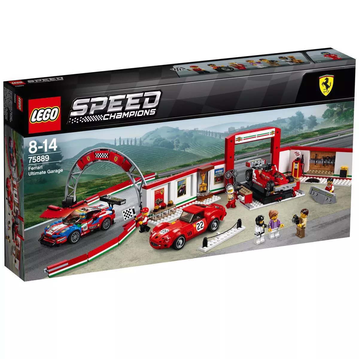 LEGO® 75889 - LEGO Speed Champions Exkluzív Ferrari garázs. Éld át azt a versenyt, amiről álmodsz a LEGO® Speed Champions Exkluzív Ferrari garázsában! Építsd meg a Ferrari 250 GTO, Ferrari 488 GTE és a történelmi Ferrari 312 T4 autók klassz LEGO elemekből összeállított változatát! Készítsd fel ezeket a bámulatos járműveket a versenyzésre a műhelybe, használd a rámpát és a szerszámokat, majd indulj a pályára! Versenyezz a kanyarokban és a boltívek alatt, hogy elsőként haladj át a kockás zászló alatt! Utána látogass el a múzeumba, és nézd meg közelebbről a klasszikus Ferrarit!