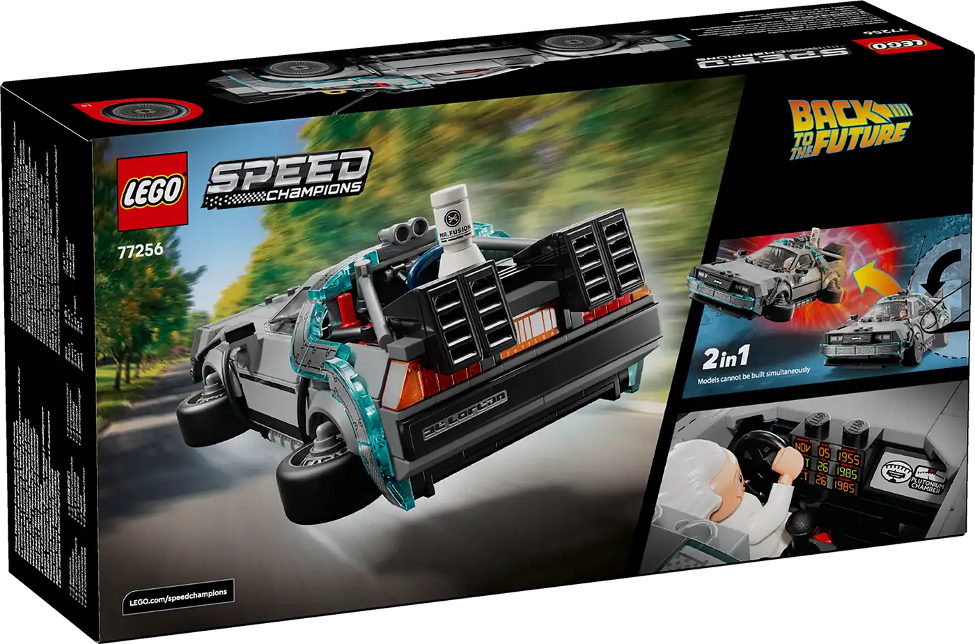 A LEGO® Speed Champions A Vissza a jövőbe időgépe (77256) modellautó-készlet segítségével a 9 éves és nagyobb gyerekek megépíthetik, kiállíthatják és újraélhetik a kultikus filmsorozat akcióit. Ez a kockákból épített játékautó a népszerű filmekben látható modell számos híres részletét tartalmazza.