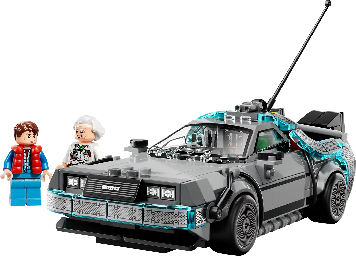 Építsd meg ezt az ikonikus autót a villámhárítóval és a kaliforniai rendszámmal az első filmből, majd alakítsd át a második film repülő változatává Mr. Fusion segítségével, narancssárga rendszámmal és oldalirányú kerekekkel. Mindkét változat hátsó szellőzőnyílásokkal, pilótafülkével, fluxuskondenzátorral és időszámítógéppel rendelkezik.