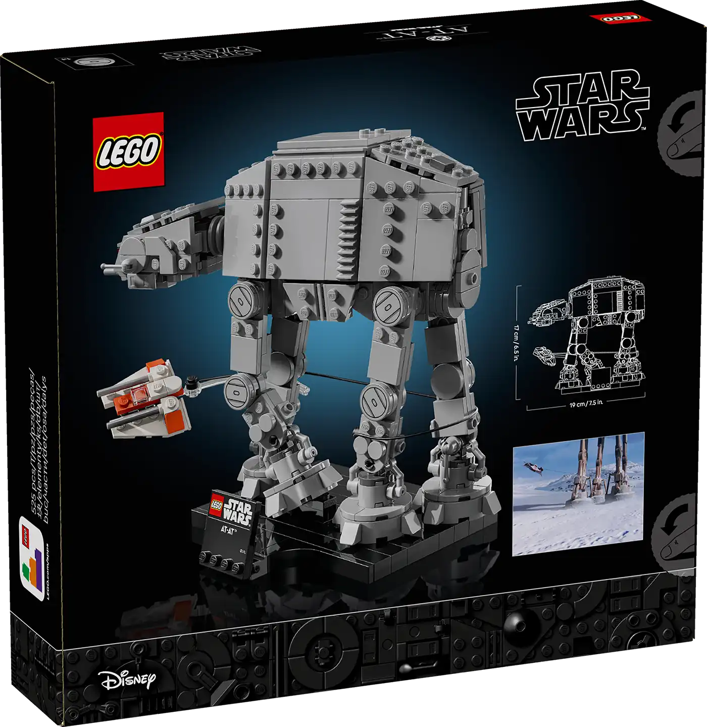 MÉRETEK – Az 525 elemből álló készletben található AT-AT magassága 17 cm, hossza 19 cm, szélessége 11 cm, és szemet gyönyörködtető asztali dísztárgyként szolgál