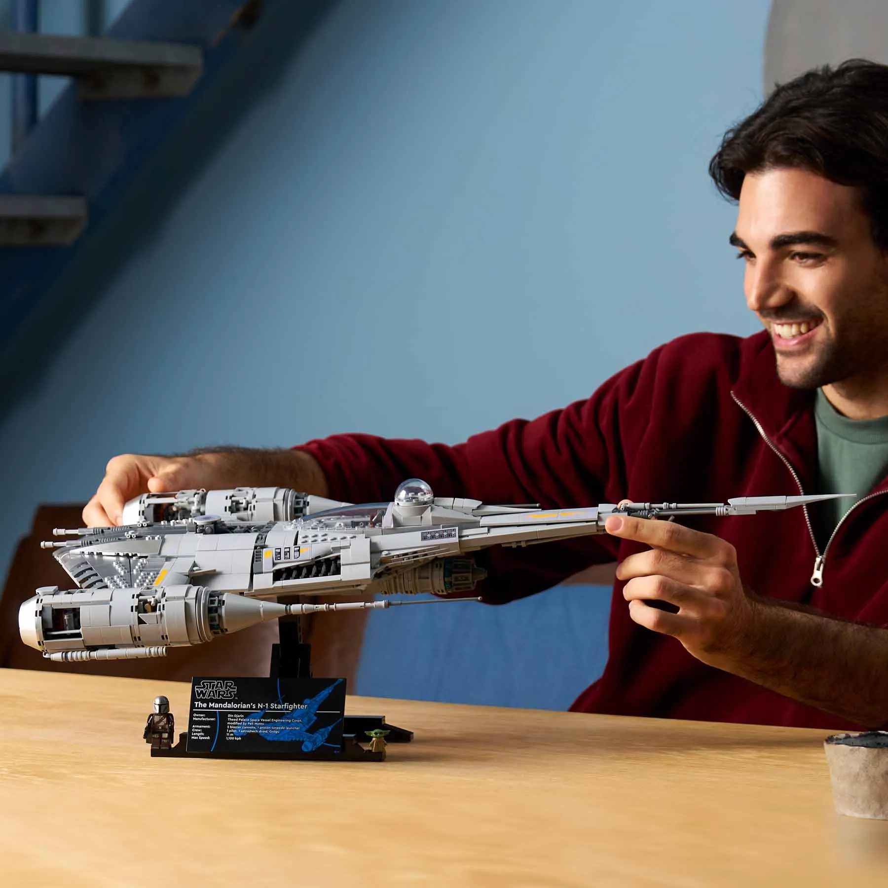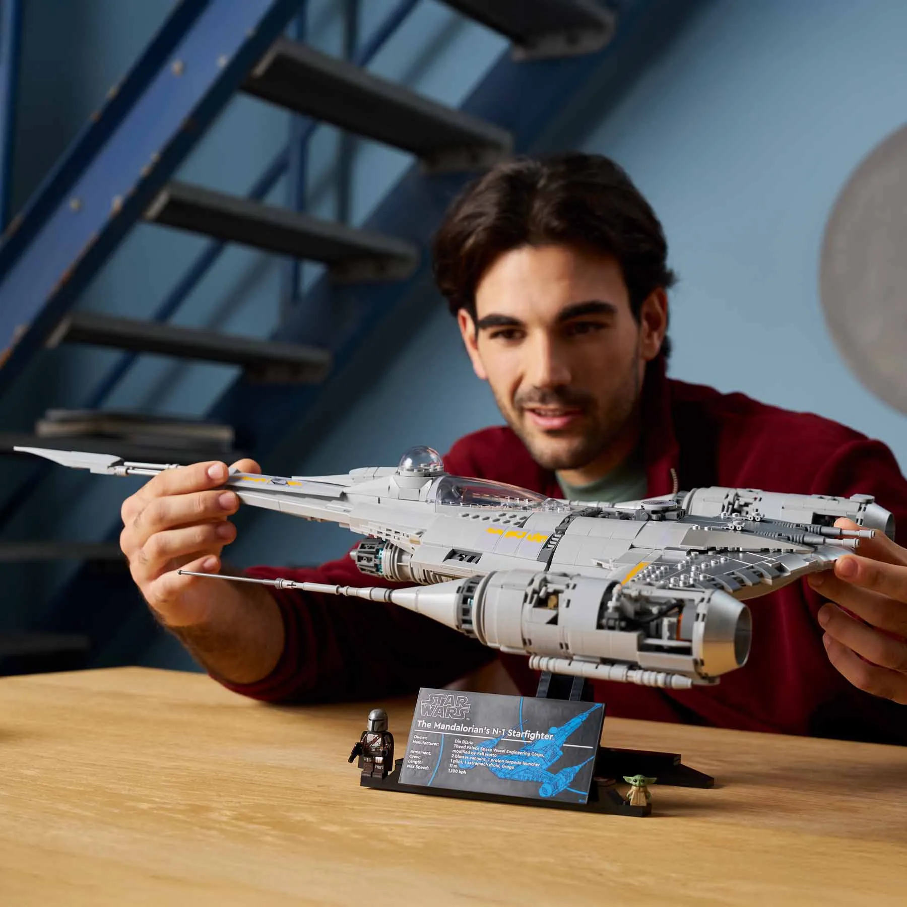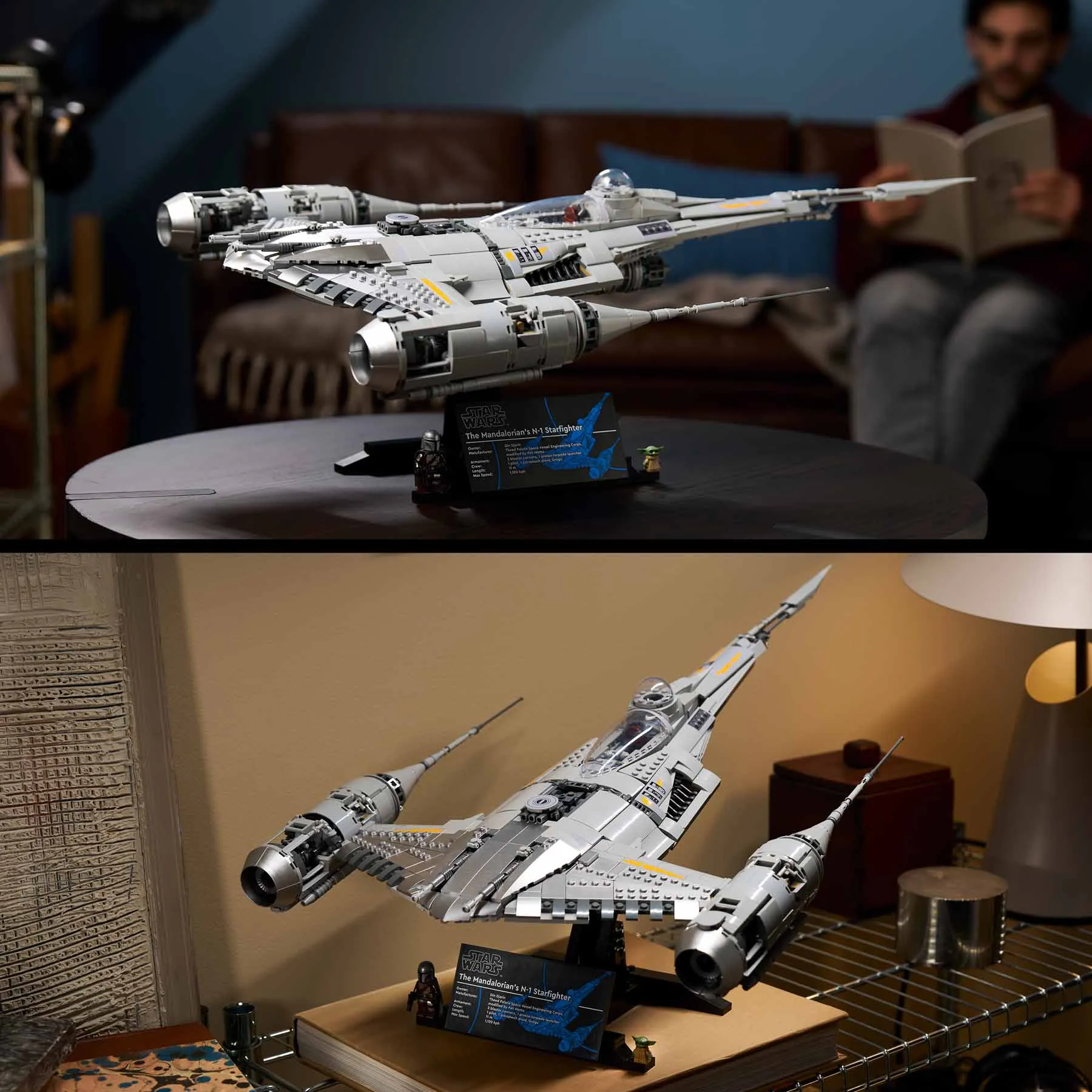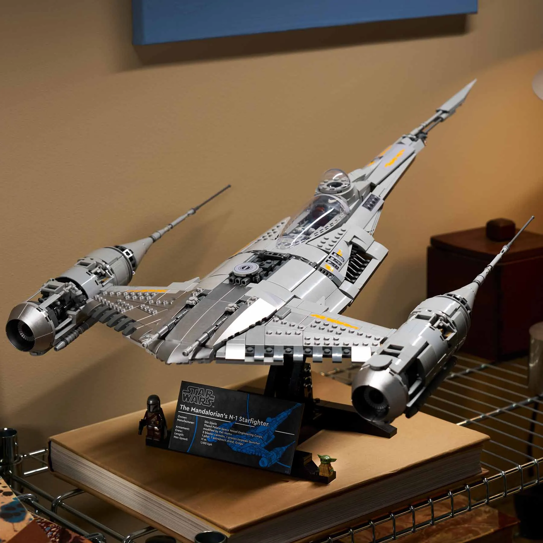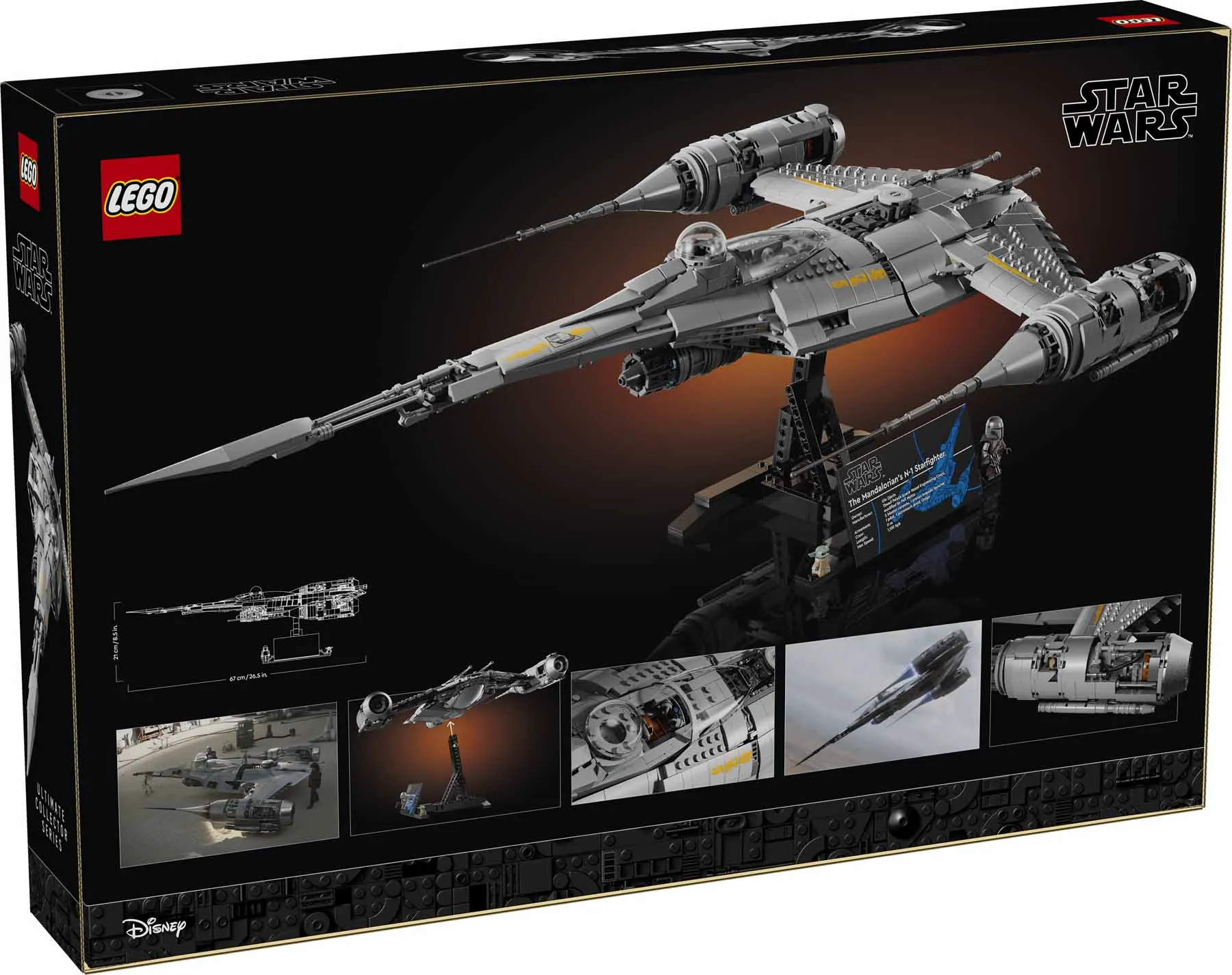 Építsd meg A Mandalóri N-1-es vadászgépének (75442) szuperrészletes Ultimate Collector Series változatát ezzel a LEGO® Star Wars™ építőkészlettel! Kapcsolódj ki, és merülj el ebben a komplex, kreatív kihívásban! Használj LEGO elemeket (köztük a speciális, ezüstszínű kockákat), hogy megalkosd az ikonikus jármű jellegzetes alakját, ahogyan a Star Wars: A Mandalóri™ 3. évadában és a Star Wars: Boba Fett könyve™ sorozatban láttad. A készlet tartalmaz egy információs táblával ellátott állványt, valamint egy Mandalóri LEGO minifigurát és egy Grogu LEGO figurát. Kétféleképp is kiállíthatod alkotásodat az állványon: az oldalára fordítva, vagy úgy, hogy az orra előlről látható.