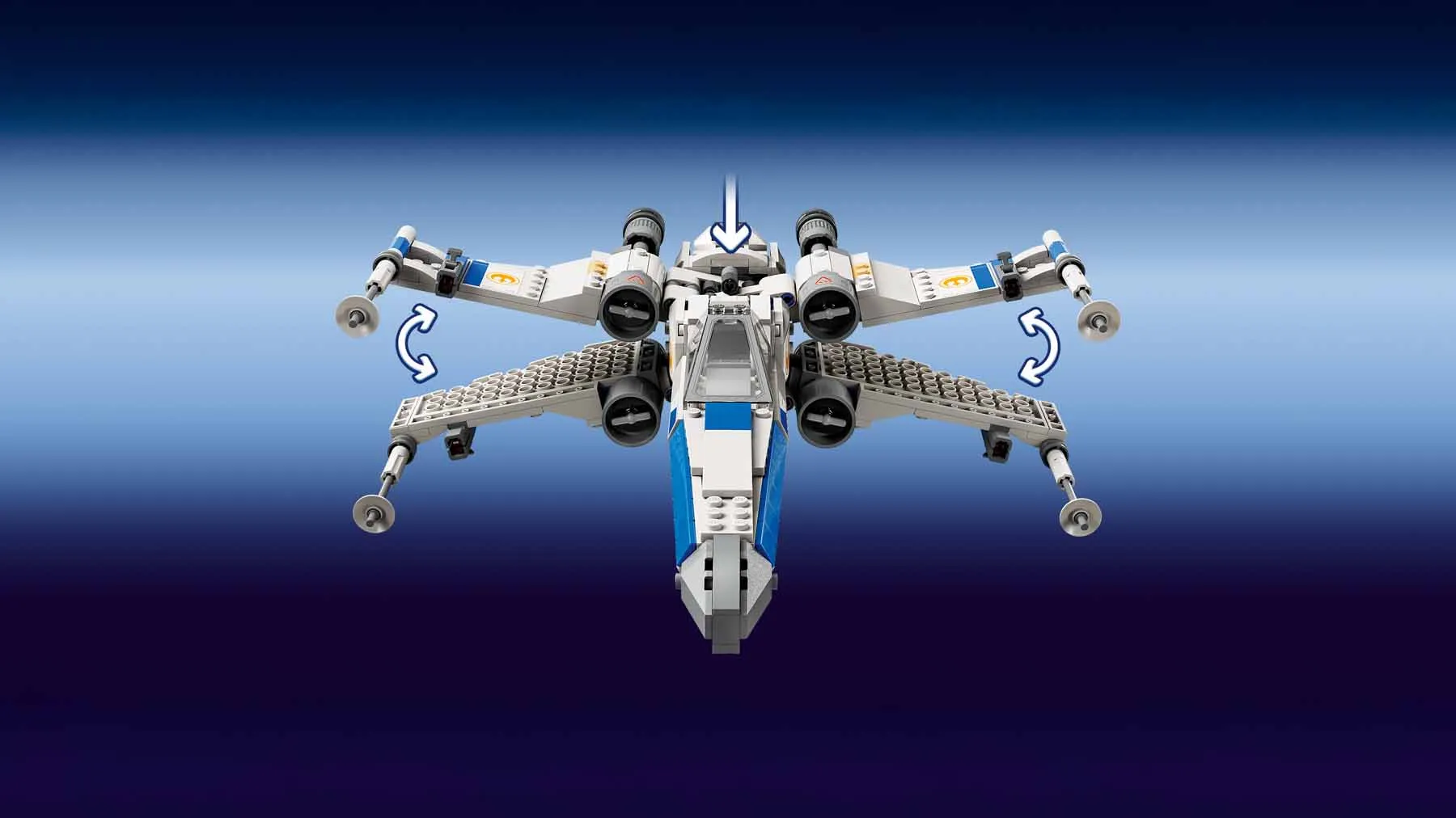MÉRETEK – Az 558 elemből álló, megépíthető építőkészletben található Star Wars™ X-szárnyú 8 cm magas, 31 cm hosszú és 28 cm széles.