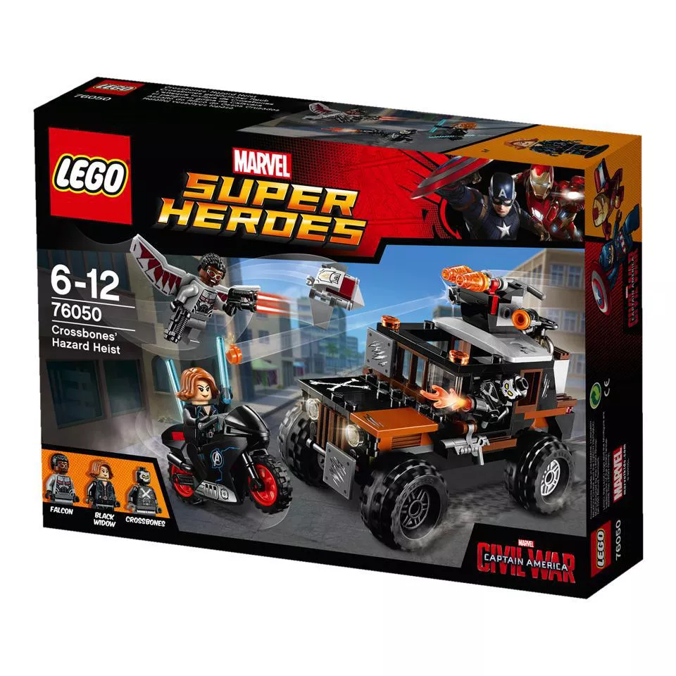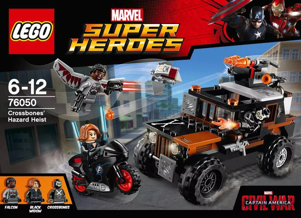 LEGO 76050 - LEGO Super Heroes Halálfej veszélyes lopása. Halálfej ellopott egy veszélyes, mérgező anyagot, és a teherautóján tárolja egy tartályban. Alakíts csapatot Fekete Özveggyel és Sólyommal, majd állítsátok meg őt! Indulj üldözésre Fekete Özvegy motorján, és az özvegy gumibotjával hárítsd el a teherautó korongvetőjének lövéseit! Repülj Sólyommal akcióba és válaszd le a Vörös Szárny nevű drónt! Vizsgáld át a tartályt, rögzítsd a ládát a drónhoz és hozd vissza biztonságosan!