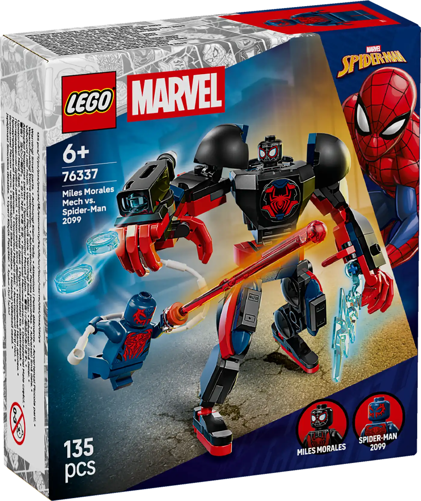 Keltsd életre a Marvel filmek gigantikus szuperhőscsatáit a 6 éves vagy nagyobb fiúknak és lányoknak készült Miles Morales robot vs. Pókember 2099 (76337) építőjátékkal! Ez a megépíthető játék végtelen sok kalandra hívja a gyerekeket a nagy, csuklós kialakítású robottal, valamint a Pókember és Miles Morales minifigurákkal.