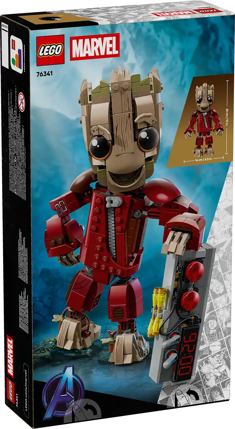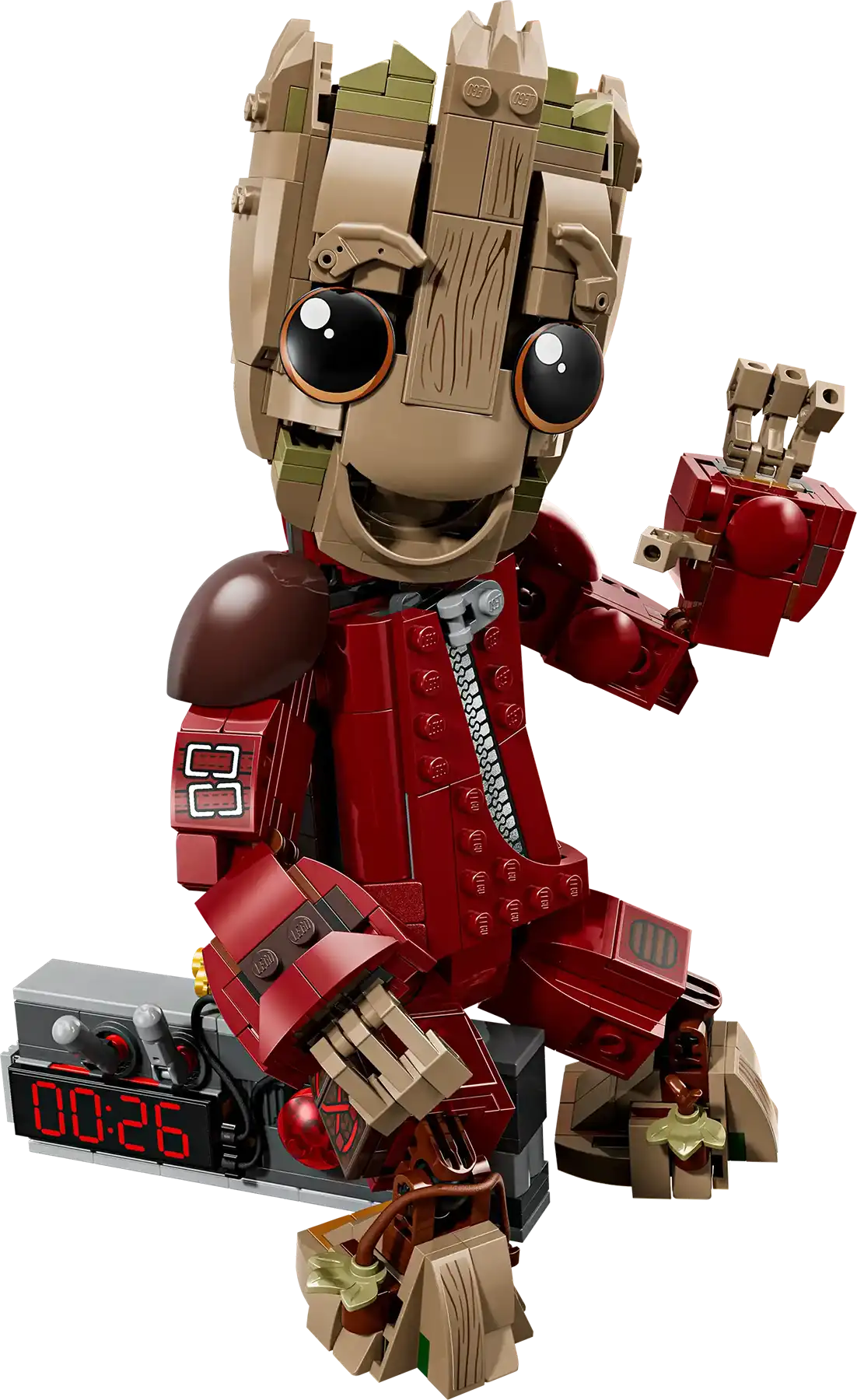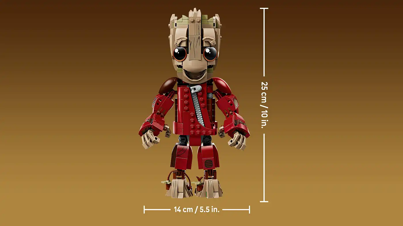 MÉRETEK – A 604 elemből álló építőkészletben a LEGO® ǀ Marvel Groot a fosztogatók egyenruhájában figura 25 cm magas