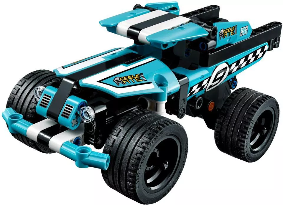 LEGO® - 42059 - LEGO Technic - Kaszkadőr járgány. Kapcsold be a strapabíró LEGO® Technic Kaszkadőr terepjárót, amelyen friss kék, fekete és fehér színek láthatók, kockás versenymatricákkal, masszív első ütközővel és széles, kék keréktárcsákkal és kis profilmélységű gumikkal a lehető legnagyobb tapadásért! Kapcsold be az erőteljes hátrahúzós motort, hogy nagy zajjal és hihetetlen sebességgel repülj át a kaszkadőr rámpán, lenyűgöző mutatványokkal kápráztatva el mindenkit!
