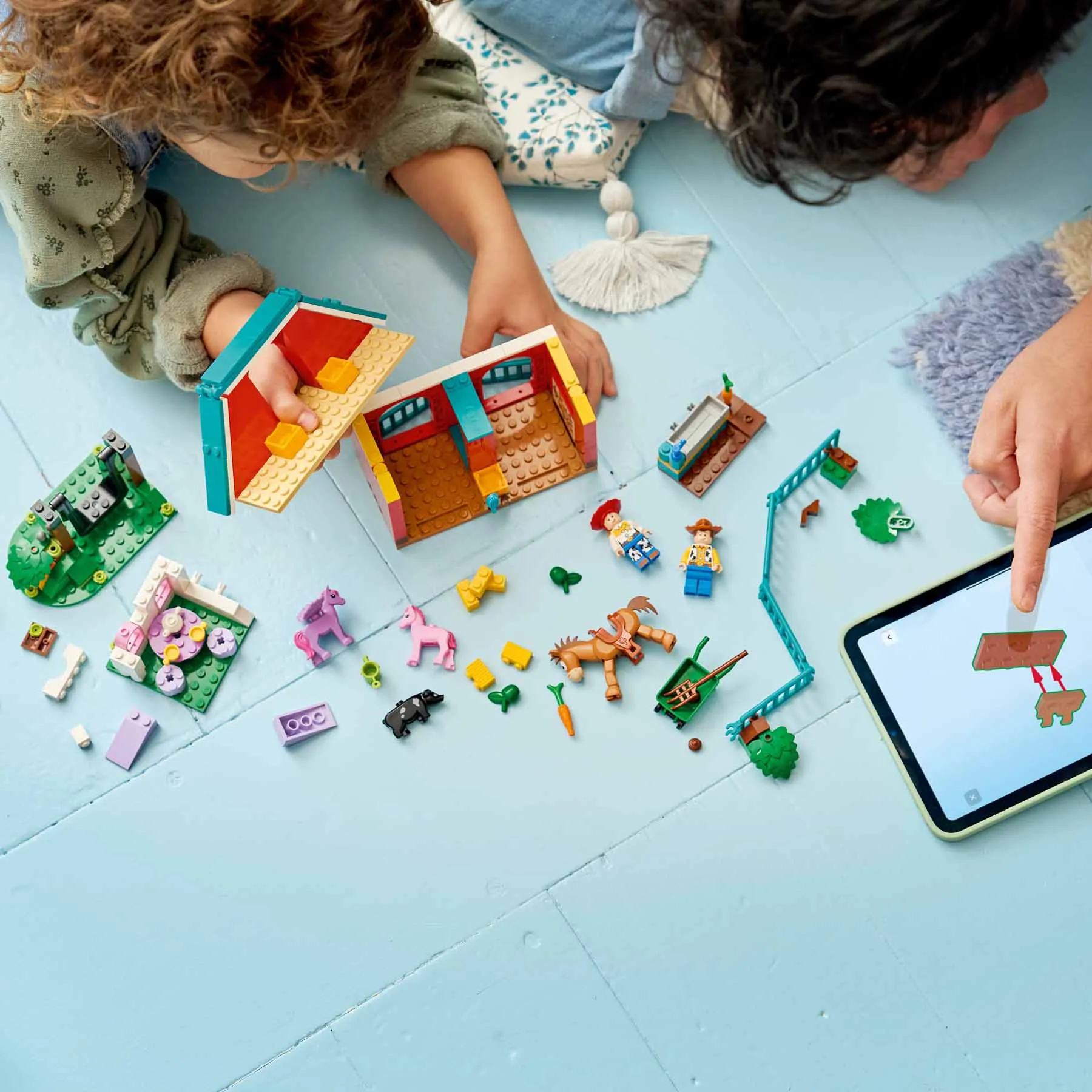 A LEGO® ǀ Disney és Pixar Toy Story 5 Blaze lovardája (43304) építőjátékkal vadnyugati kalandok várnak a 4 éves vagy nagyobb gyerekekre. Ez a Toy Story 5 ihlette, lovardát tartalmazó játék építőkészlet 6 LEGO ǀ Disney és Pixar karakterrel teszi még izgalmasabbá a játékot: Woody és Jessie minifigurák, Szemenagy, a ló, Blaze házi malaca, egy póni és egy szárnyas ló. A szetthez kapukkal ellátott pajta, szénapadlás, játszóház, veteményeskert és itató, valamint egy fán lógó hinta tartozik, amelyben egy rejtett időkapszulát is találsz.