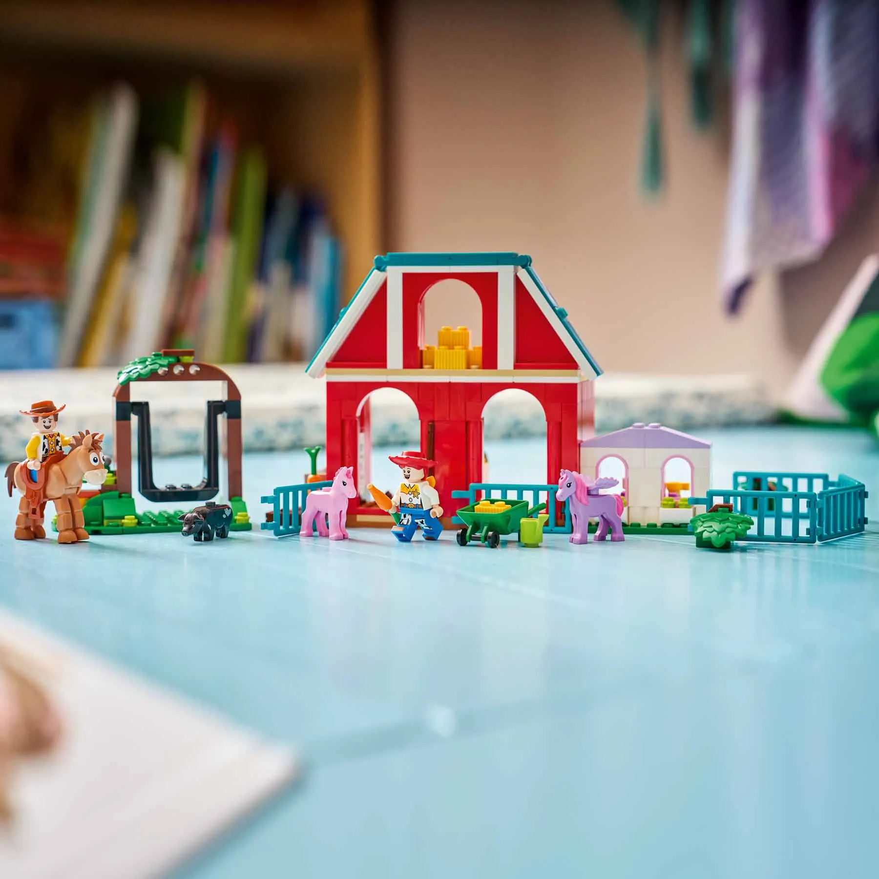 MÉRETEK – A 209 darabból álló LEGO® ǀ Disney és Pixar játék építőkészletben az istálló és a hozzá kapcsolt házikó 13 cm magas, 22 cm széles és 7 cm mély.